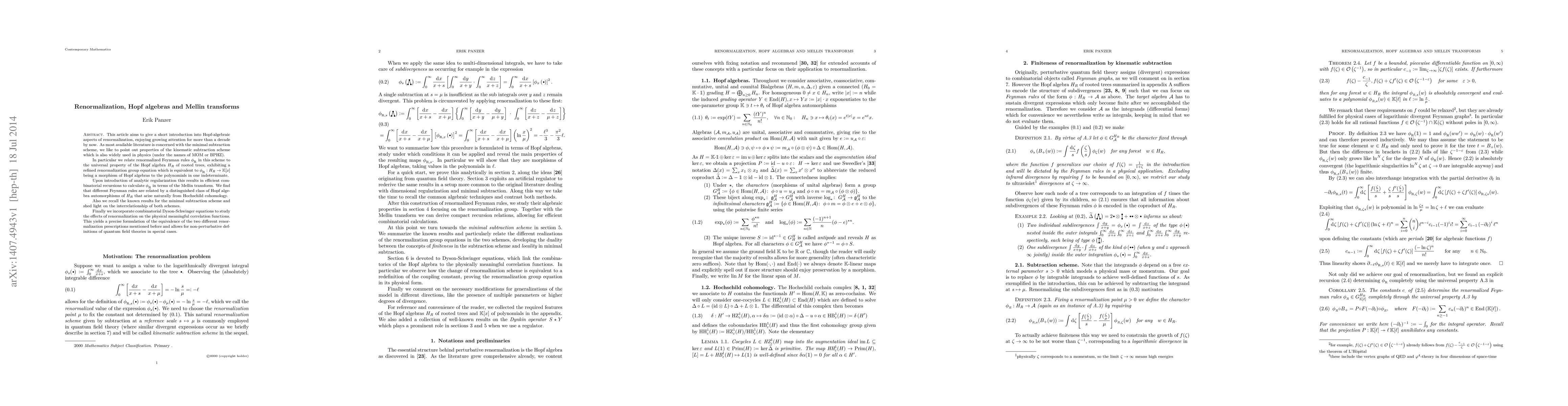 This paper introduces Hopf-algebraic methods for renormalization, focusing on the kinematic subtraction scheme. It establishes a connection between renormalized Feynman rules and the Hopf algebra of rooted trees, leading to combinatorial recursions using Mellin transforms, and elucidates the relationship between minimal and kinematic subtraction schemes.