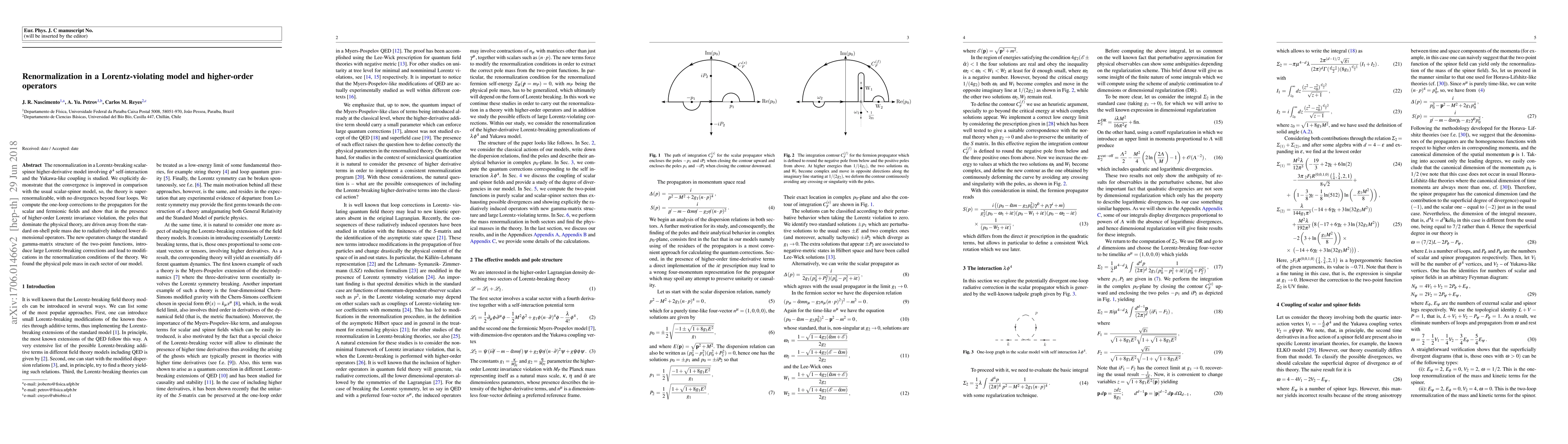 The renormalization in a Lorentz-breaking scalar-spinor higher-derivative model involving $\phi^4$ self-interaction and the Yukawa-like coupling is studied. We explicitly de- monstrate that the convergence is improved in comparison with the usual scalar-spinor model, so, the theory is super-renormalizable, with no divergences beyond four loops. We compute the one-loop corrections to the propagators for the scalar and fermionic fields and show that in the presence of higher-order Lorentz invariance violation, the poles that dominate the physical theory, are driven away from the standard on-shell pole mass due to radiatively induced lower dimensional operators. The new operators change the standard gamma-matrix structure of the two-point functions, introduce large Lorentz-breaking corrections and lead to modifications in the renormalization conditions of the theory. We found the physical pole mass in each sector of our model.