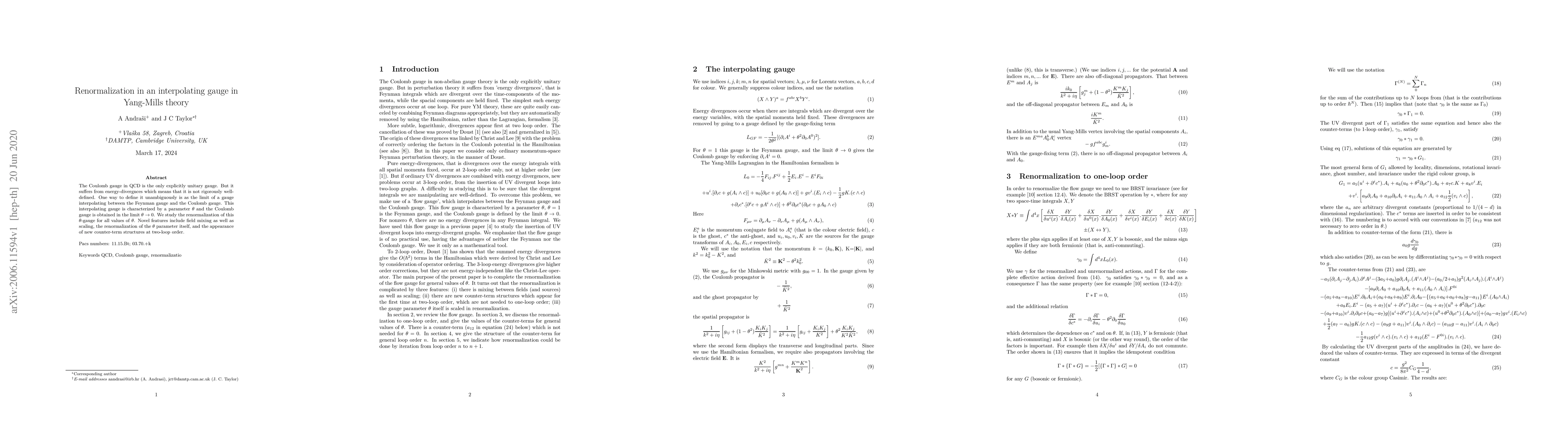 This paper investigates the renormalization of an interpolating gauge between the Feynman and Coulomb gauges in Yang-Mills theory, characterized by a parameter theta, with a focus on field mixing, scaling, and novel counter-term structures, especially at two-loop order. The Coulomb gauge, though unitary, is rigorously undefined due to energy divergences, and this study aims to clarify its renormalization properties through the theta-gauge.