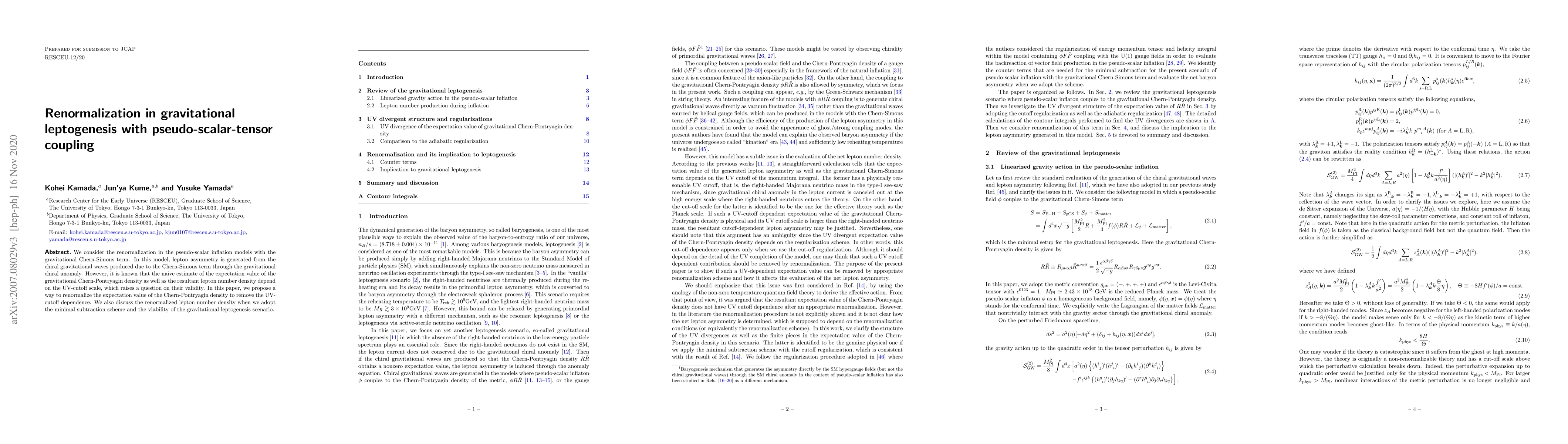 This paper proposes a renormalization method to address the UV-cutoff dependence in pseudo-scalar inflation models with gravitational Chern-Simons coupling, ensuring the validity of lepton asymmetry generation via gravitational chiral anomaly. It discusses the renormalized lepton number density and assesses the viability of gravitational leptogenesis.