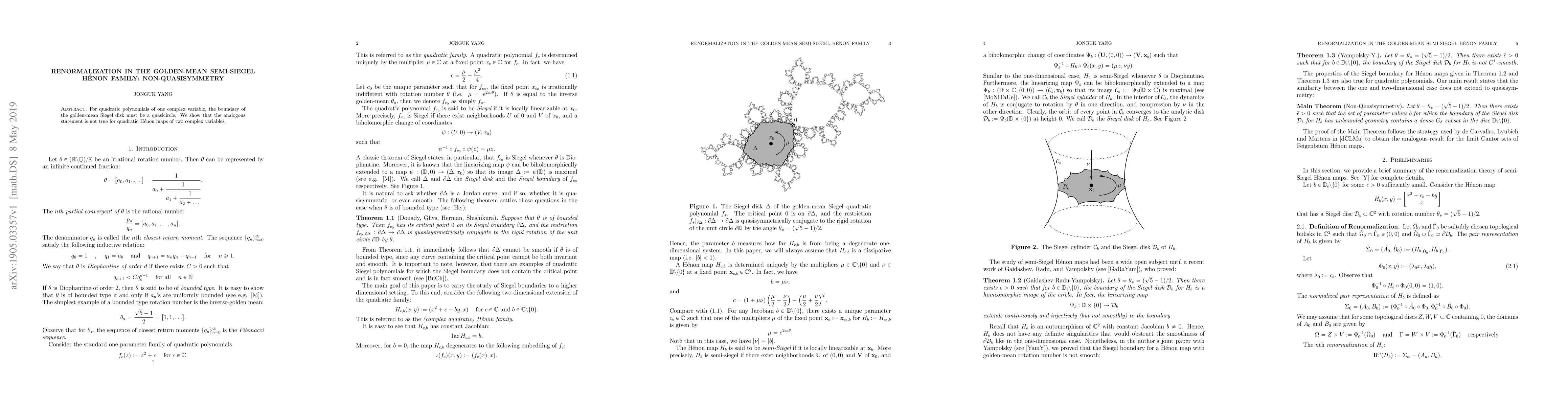 Summary: This study reveals that, unlike quadratic polynomials in one complex variable where the boundary of the golden-mean Siegel disk is a quasicircle, quadratic Hénon maps in two complex variables do not adhere to this property, challenging the notion of non-quasisymmetry.