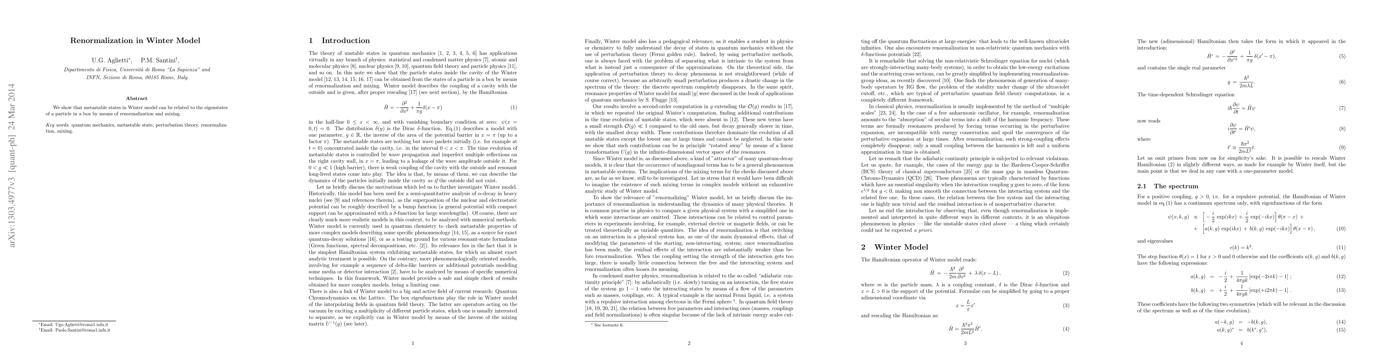 We show that metastable states in Winter model can be related to the eigenstates of a particle in a box by means of renormalization and mixing.