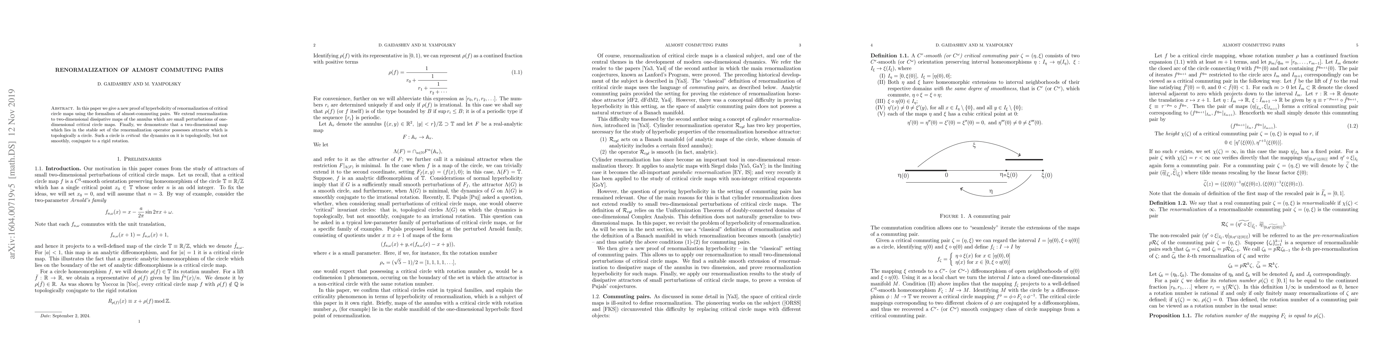 This paper presents a new proof of the hyperbolicity of renormalization for critical circle maps using the concept of almost-commuting pairs, extends this method to two-dimensional dissipative maps, and demonstrates that such maps possess attractors topologically equivalent to critical circles with topologically conjugate dynamics to rigid rotations.