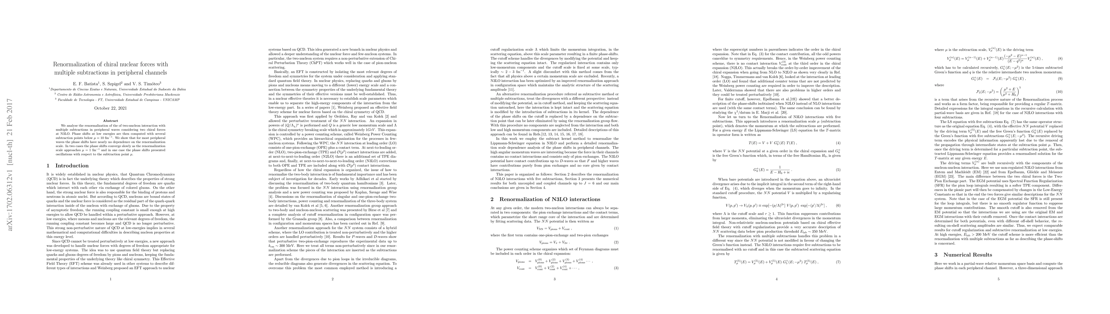 We analyse the renormalization of the of two-nucleon interaction with multiple subtractions in peripheral waves considering two chiral forces at N3LO. Phase shifts at low energies are then computed with several subtraction points below \mu = 10 / fm. We show that for most peripheral waves the phase shifts have nearly no dependence on the renormalization scale. In two cases the phase shifts converge slowly as the renormalization scale approaches \mu = 1 / fm and in one case the phase shifts presented oscillations with respect to the subtraction point \mu.