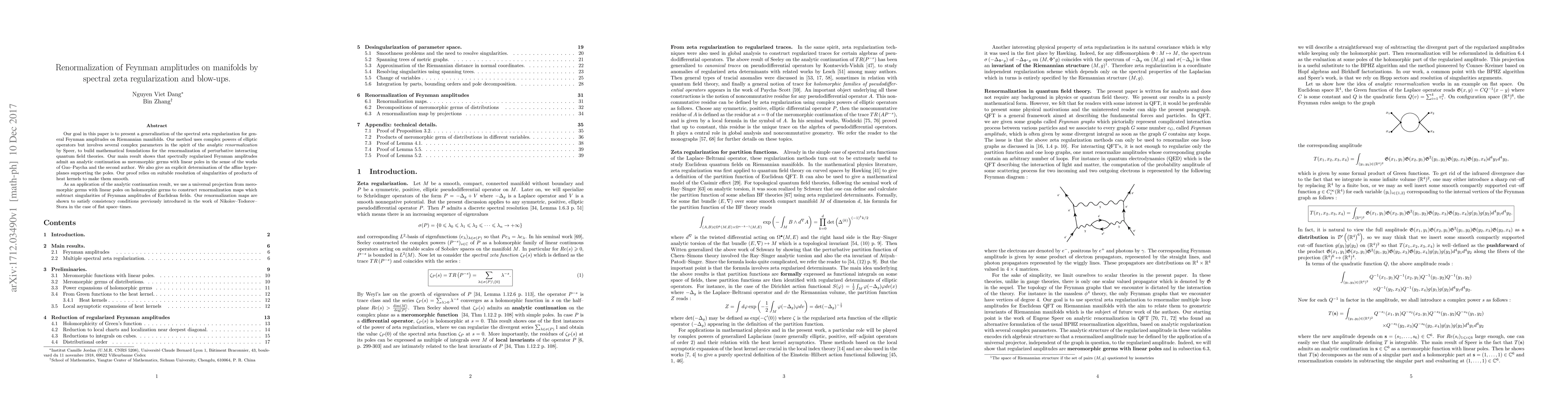This paper generalizes spectral zeta regularization to Feynman amplitudes, providing analytic continuations with linear poles and resolving singularities via smooth heat kernels. The method constructs renormalization maps that subtract singularities in Euclidean quantum field theories, satisfying consistency conditions for flat space-times.