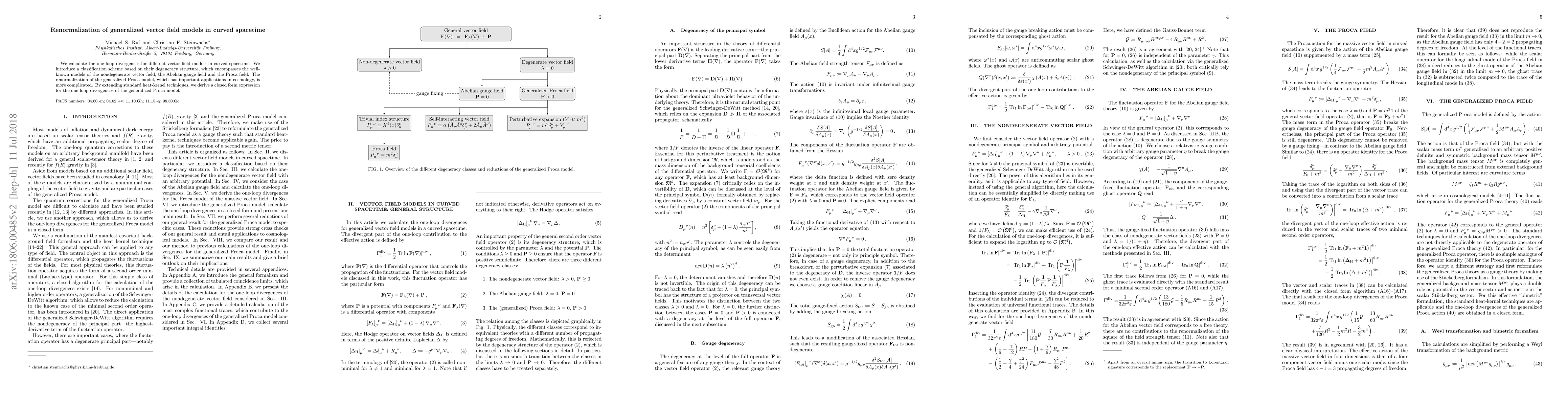 This paper calculates one-loop divergences for various vector field models in curved spacetime, introducing a classification scheme based on degeneracy structures. It derives a closed form expression for the one-loop divergences of the generalized Proca model, which is crucial for cosmological applications.