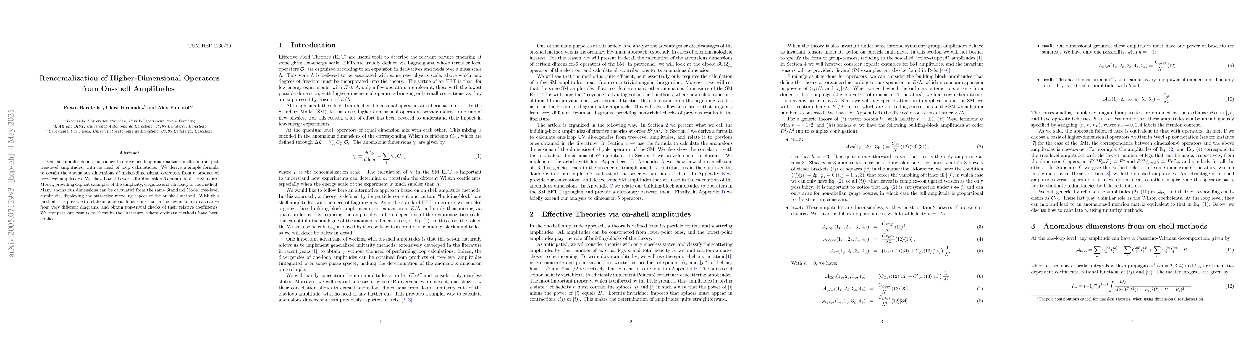 On-shell amplitude methods allow to derive one-loop renormalization effects from just tree-level amplitudes, with no need of loop calculations. We derive a simple formula to obtain the anomalous dimensions of higher-dimensional operators from a product of tree-level amplitudes. We show how this works for dimension-6 operators of the Standard Model, providing explicit examples of the simplicity, elegance and efficiency of the method. Many anomalous dimensions can be calculated from the same Standard Model tree-level amplitude, displaying the attractive recycling aspect of the on-shell method. With this method, it is possible to relate anomalous dimensions that in the Feynman approach arise from very different diagrams, and obtain non-trivial checks of their relative coefficients. We compare our results to those in the literature, where ordinary methods have been applied.