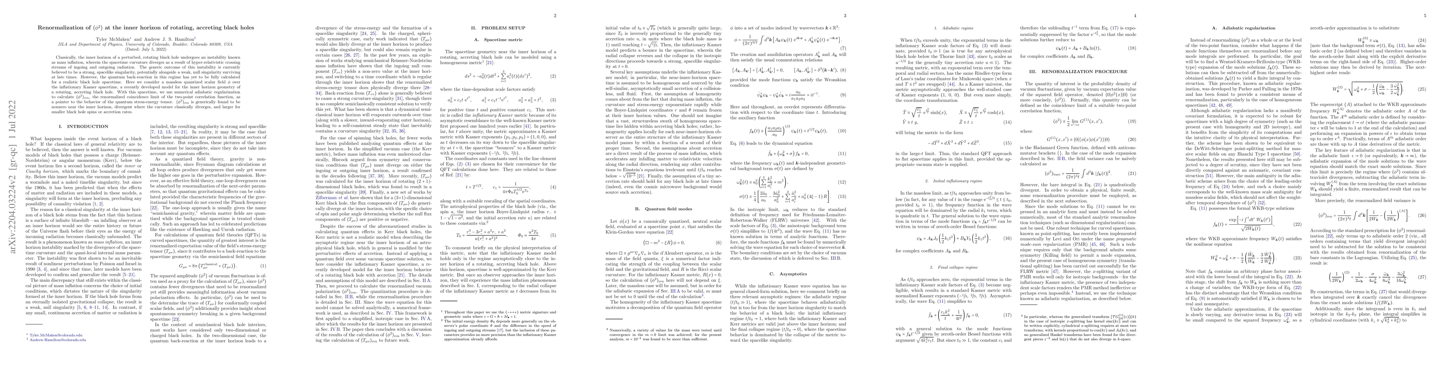 Classically, the inner horizon of a perturbed, rotating black hole undergoes an instability known as mass inflation, wherein the spacetime curvature diverges as a result of hyper-relativistic crossing streams of ingoing and outgoing radiation. The generic outcome of this instability is currently believed to be a strong, spacelike singularity, potentially alongside a weak, null singularity surviving at late times. However, the quantum back-reaction in this regime has yet to be fully calculated for a realistic black hole spacetime. Here we consider a massless quantized scalar field $\phi$ over the inflationary Kasner spacetime, a recently developed model for the inner horizon geometry of a rotating, accreting black hole. With this spacetime, we use numerical adiabatic regularization to calculate $\langle\phi^2\rangle_\text{ren}$, the renormalized coincidence limit of the two-point correlation function, as a pointer to the behavior of the quantum stress-energy tensor. $\langle\phi^2\rangle_\text{ren}$ is generically found to be nonzero near the inner horizon, divergent where the curvature classically diverges, and larger for smaller black hole spins or accretion rates.