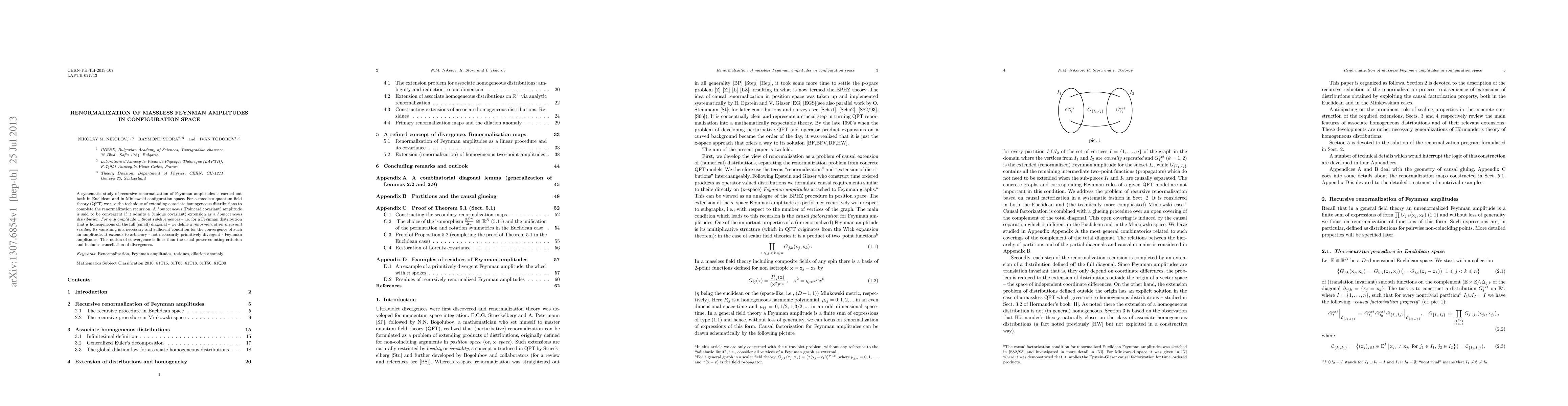 This paper explores the renormalization of massless Feynman amplitudes in both Euclidean and Minkowski spaces, employing techniques to extend associate homogeneous distributions. It introduces a renormalization invariant residue and defines convergence for amplitudes without subdivergences, providing a finer criterion than the usual power counting.