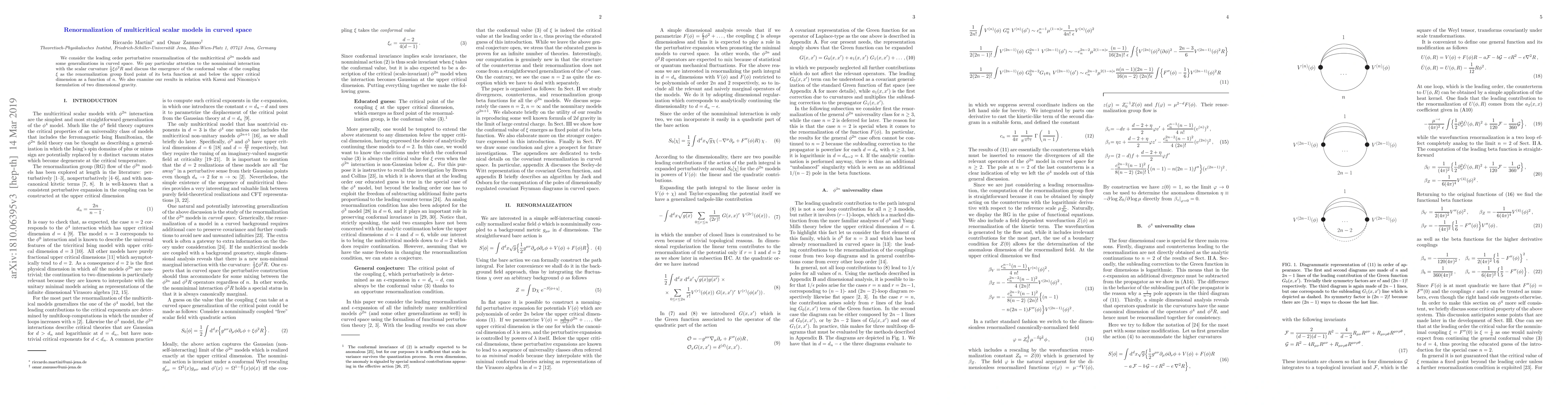 We consider the leading order perturbative renormalization of the multicritical $\phi^{2n}$ models and some generalizations in curved space. We pay particular attention to the nonminimal interaction with the scalar curvature $\frac{1}{2}\xi \phi^2 R$ and discuss the emergence of the conformal value of the coupling $\xi$ as the renormalization group fixed point of its beta function at and below the upper critical dimension as a function of $n$. We also examine our results in relation with Kawai and Ninomiya's formulation of two dimensional gravity.