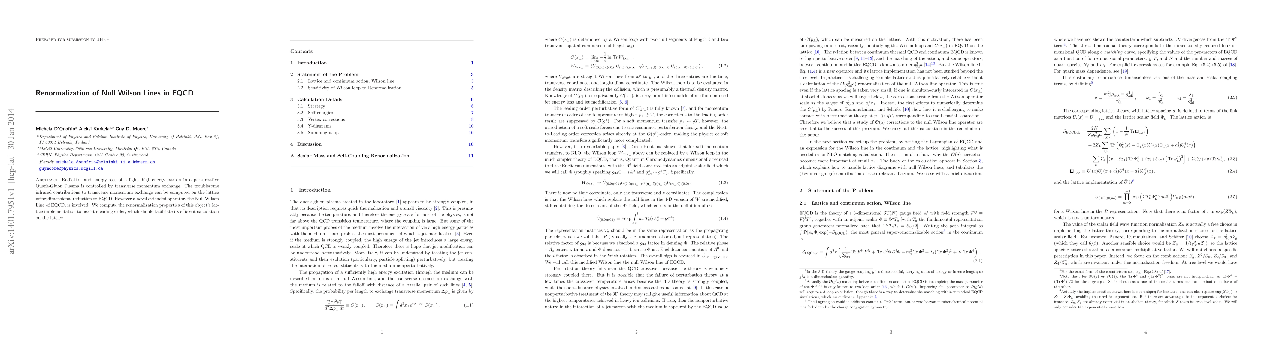 Radiation and energy loss of a light, high-energy parton in a perturbative Quark-Gluon Plasma is controlled by transverse momentum exchange. The troublesome infrared contributions to transverse momentum exchange can be computed on the lattice using dimensional reduction to EQCD. However a novel extended operator, the Null Wilson Line of EQCD, is involved. We compute the renormalization properties of this object's lattice implementation to next-to-leading order, which should facilitate its efficient calculation on the lattice.