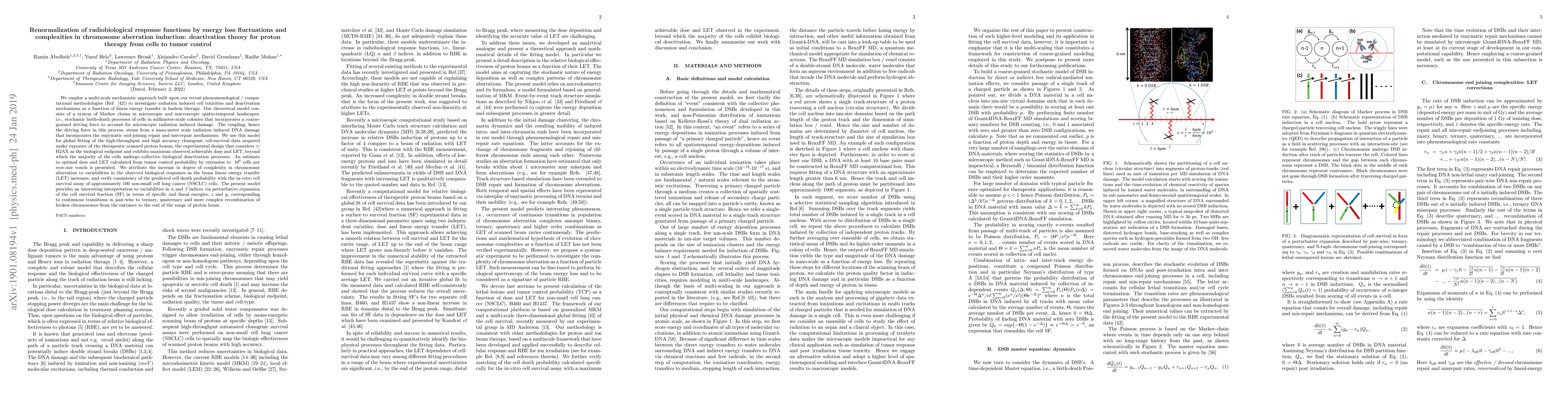 We employ a multi-scale mechanistic approach to investigate radiation induced cell toxicities and deactivation mechanisms as a function of linear energy transfer in hadron therapy. Our theoretical model consists of a system of Markov chains in microscopic and macroscopic spatio-temporal landscapes, i.e., stochastic birth-death processes of cells in millimeter-scale colonies that incorporates a coarse-grained driving force to account for microscopic radiation induced damage. The coupling, hence the driving force in this process, stems from a nano-meter scale radiation induced DNA damage that incorporates the enzymatic end-joining repair and mis-repair mechanisms. We use this model for global fitting of the high-throughput and high accuracy clonogenic cell-survival data acquired under exposure of the therapeutic scanned proton beams, the experimental design that considers $\gamma$-H2AX as the biological endpoint and exhibits maximum observed achievable dose and LET, beyond which the majority of the cells undergo collective biological deactivation processes. An estimate to optimal dose and LET calculated from tumor control probability by extension to $~ 10^6$ cells per $mm$-size voxels is presented. We attribute the increase in degree of complexity in chromosome aberration to variabilities in the observed biological responses as the beam linear energy transfer (LET) increases, and verify consistency of the predicted cell death probability with the in-vitro cell survival assay of approximately 100 non-small cell lung cancer (NSCLC) cells.