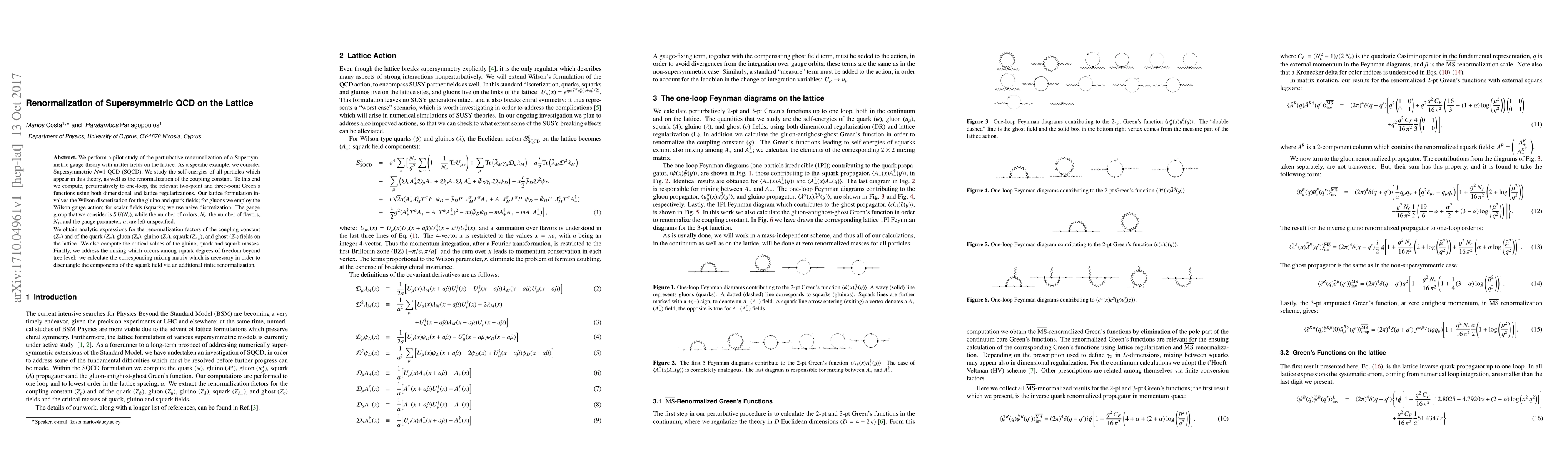 We perform a pilot study of the perturbative renormalization of a Supersymmetric gauge theory with matter fields on the lattice. As a specific example, we consider Supersymmetric ${\cal N}{=}1$ QCD (SQCD). We study the self-energies of all particles which appear in this theory, as well as the renormalization of the coupling constant. To this end we compute, perturbatively to one-loop, the relevant two-point and three-point Green's functions using both dimensional and lattice regularizations. Our lattice formulation involves the Wilson discretization for the gluino and quark fields; for gluons we employ the Wilson gauge action; for scalar fields (squarks) we use naive discretization. The gauge group that we consider is $SU(N_c)$, while the number of colors, $N_c$, the number of flavors, $N_f$, and the gauge parameter, $\alpha$, are left unspecified. We obtain analytic expressions for the renormalization factors of the coupling constant ($Z_g$) and of the quark ($Z_\psi$), gluon ($Z_u$), gluino ($Z_\lambda$), squark ($Z_{A_\pm}$), and ghost ($Z_c$) fields on the lattice. We also compute the critical values of the gluino, quark and squark masses. Finally, we address the mixing which occurs among squark degrees of freedom beyond tree level: we calculate the corresponding mixing matrix which is necessary in order to disentangle the components of the squark field via an additional finite renormalization.