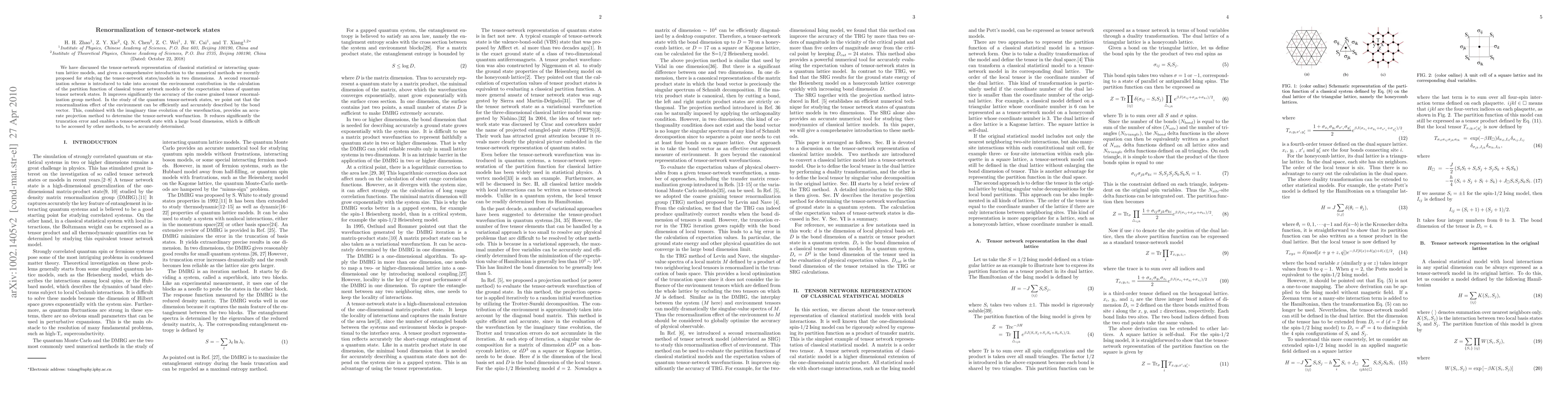 This paper introduces a new renormalization scheme for tensor-network states to account for environmental contributions, significantly enhancing the accuracy of the tensor renormalization group method. It also presents an efficient method for determining quantum tensor-network wavefunctions, reducing truncation errors and enabling the study of large bond dimension states.