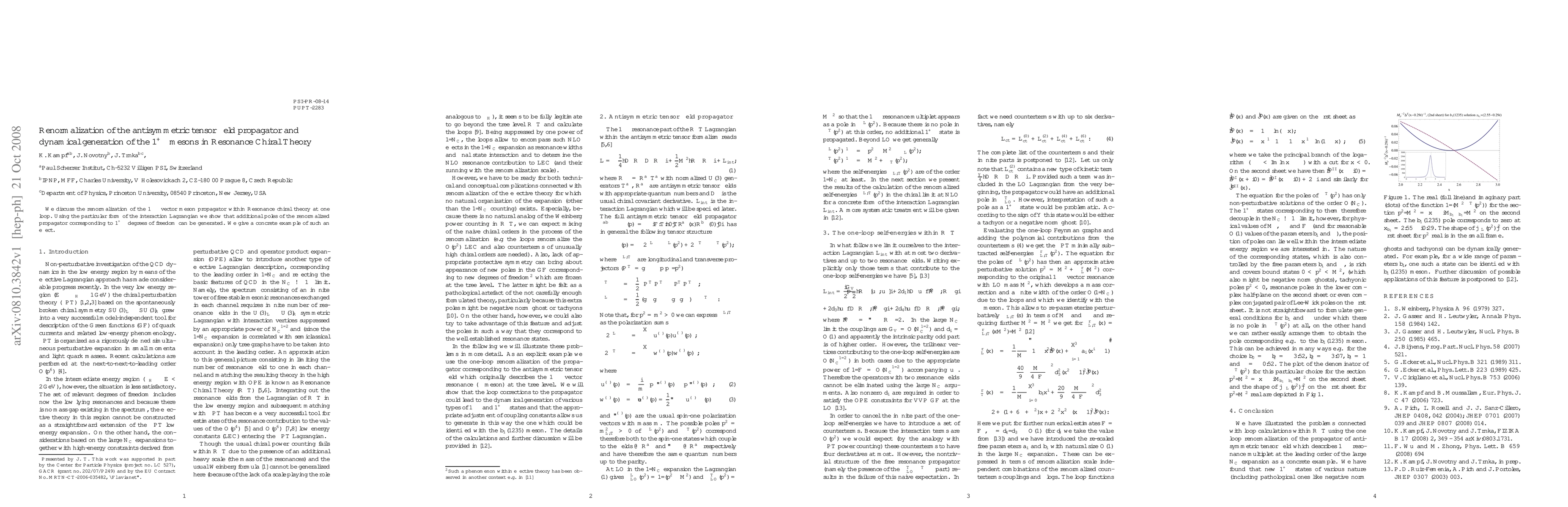 We discuss the renormalization of the $1^{--}$ vector meson propagator within Resonance chiral theory at one loop. Using the particular form of the interaction Lagrangian we show that additional poles of the renormalized propagator corresponding to $1^{+-}$ degrees of freedom can be generated. We give a concrete example of such an effect.