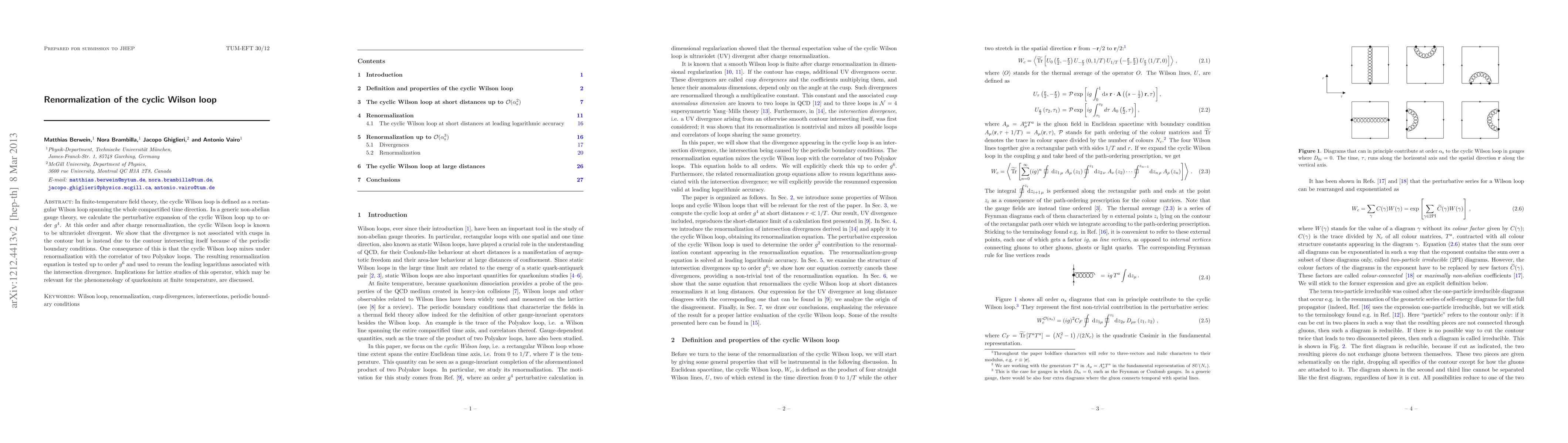 In finite-temperature field theory, the cyclic Wilson loop is defined as a rectangular Wilson loop spanning the whole compactified time direction. In a generic non-abelian gauge theory, we calculate the perturbative expansion of the cyclic Wilson loop up to order g^4. At this order and after charge renormalization, the cyclic Wilson loop is known to be ultraviolet divergent. We show that the divergence is not associated with cusps in the contour but is instead due to the contour intersecting itself because of the periodic boundary conditions. One consequence of this is that the cyclic Wilson loop mixes under renormalization with the correlator of two Polyakov loops. The resulting renormalization equation is tested up to order g^6 and used to resum the leading logarithms associated with the intersection divergence. Implications for lattice studies of this operator, which may be relevant for the phenomenology of quarkonium at finite temperature, are discussed.