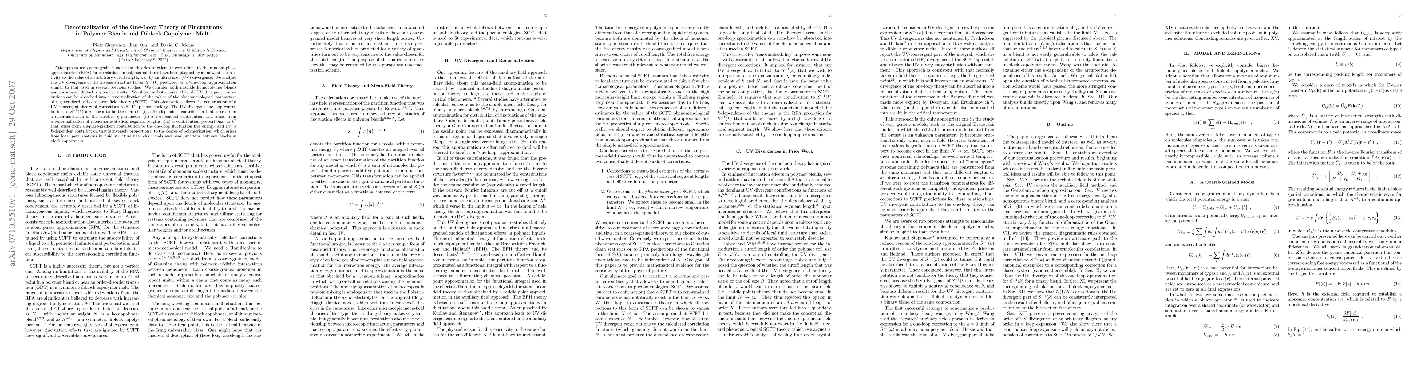 Attempts to use coarse-grained molecular theories to calculate corrections to the random-phase approximation (RPA) for correlations in polymer mixtures have been plagued by an unwanted sensitivity to the value of an arbitrary cutoff length, {\it i.e.}, by an ultraviolet (UV) divergence. We analyze the UV divergence of the inverse structure factor $S^{-1}(k)$ predicted by a `one-loop' approximation similar to that used in several previous studies. We consider both miscible homopolymer blends and disordered diblock copolymer melts. We show, in both cases, that all UV divergent contributions can be absorbed into a renormalization of the values of the phenomenological parameters of a generalized self-consistent field theory (SCFT). This observation allows the construction of a UV convergent theory of corrections to SCFT phenomenology. The UV-divergent one-loop contribution to $S^{-1}(k)$ are shown to be the sum of: (i) a $k$-independent contribution that arises from a renormalization of the effective $\chi$ parameter, (ii) a $k$-dependent contribution that arises from a renormalization of monomer statistical segment lengths, (iii) a contribution proportional to $k^{2}$ that arises from a square-gradient contribution to the one-loop fluctuation free energy, and (iv) a $k$-dependent contribution that is inversely proportional to the degree of polymerization, which arises from local perturbations in fluid structure near chain ends and near junctions between blocks in block copolymers.