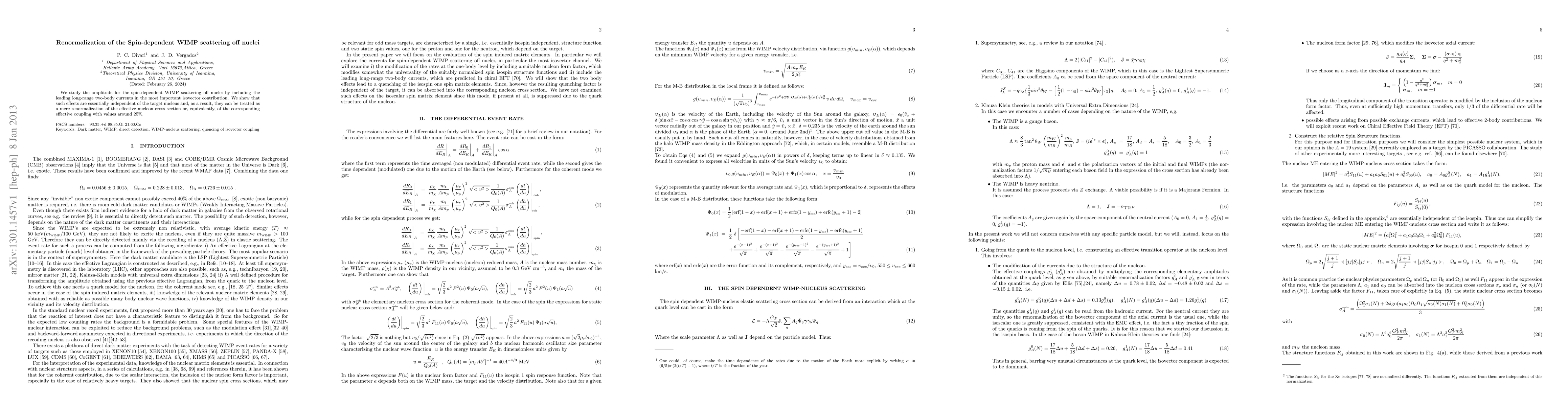 This paper investigates the spin-dependent scattering of weakly interacting massive particles (WIMPs) off nuclei, incorporating leading long-range two-body currents. The study finds that these effects lead to a renormalization of the effective nucleon cross section, with a correction factor of approximately 25%.