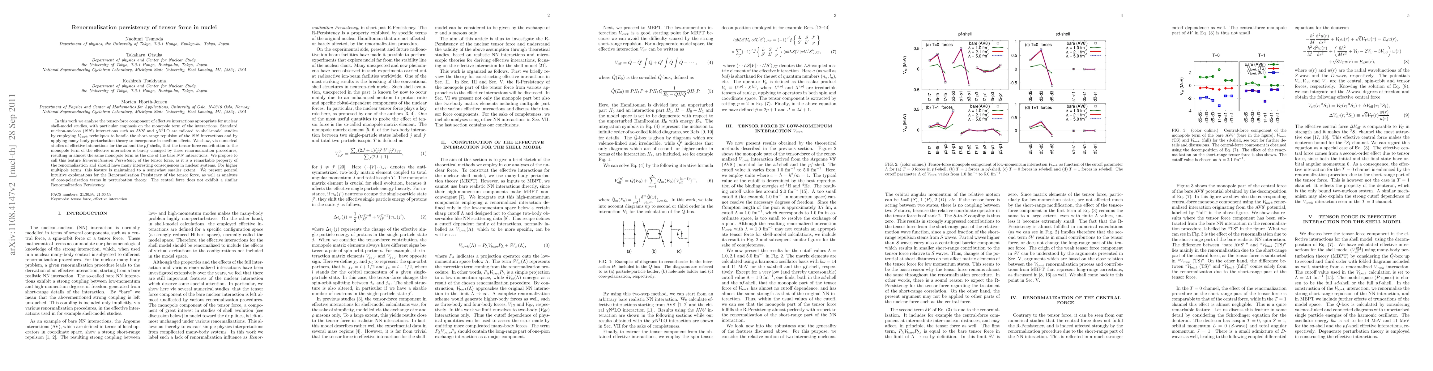 Researchers found that tensor forces in nuclear interactions remain relatively unchanged after renormalization procedures, a property dubbed Renormalization Persistency. This finding has implications for understanding the behavior of nuclei.