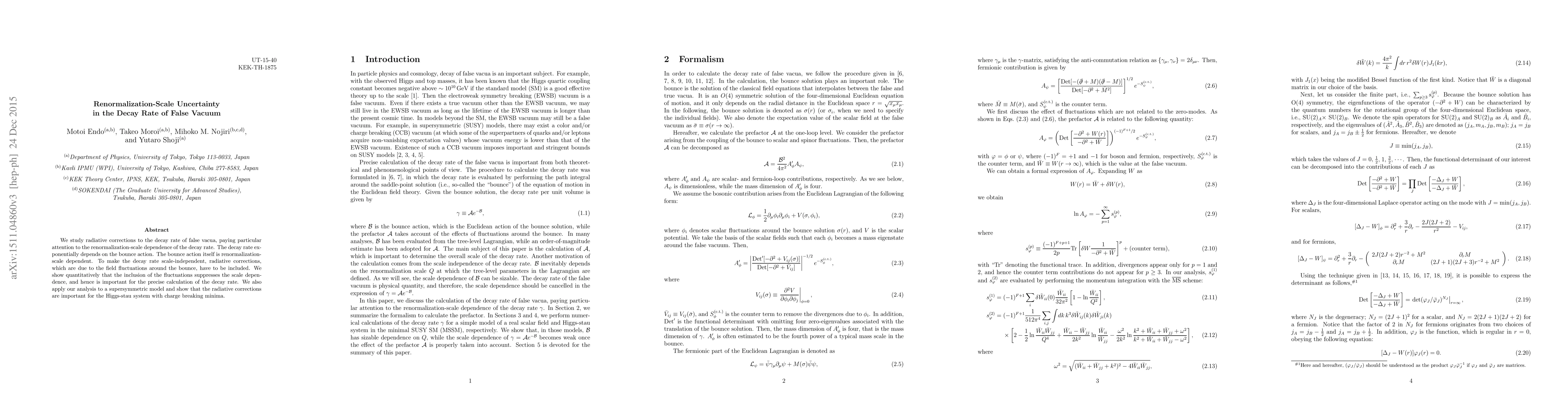This paper investigates the renormalization-scale uncertainty in the decay rate of false vacua, demonstrating that radiative corrections significantly reduce scale dependence. The study emphasizes the importance of including field fluctuations to achieve a scale-independent decay rate, and applies these findings to a supersymmetric model, highlighting their relevance for the Higgs-stau system.