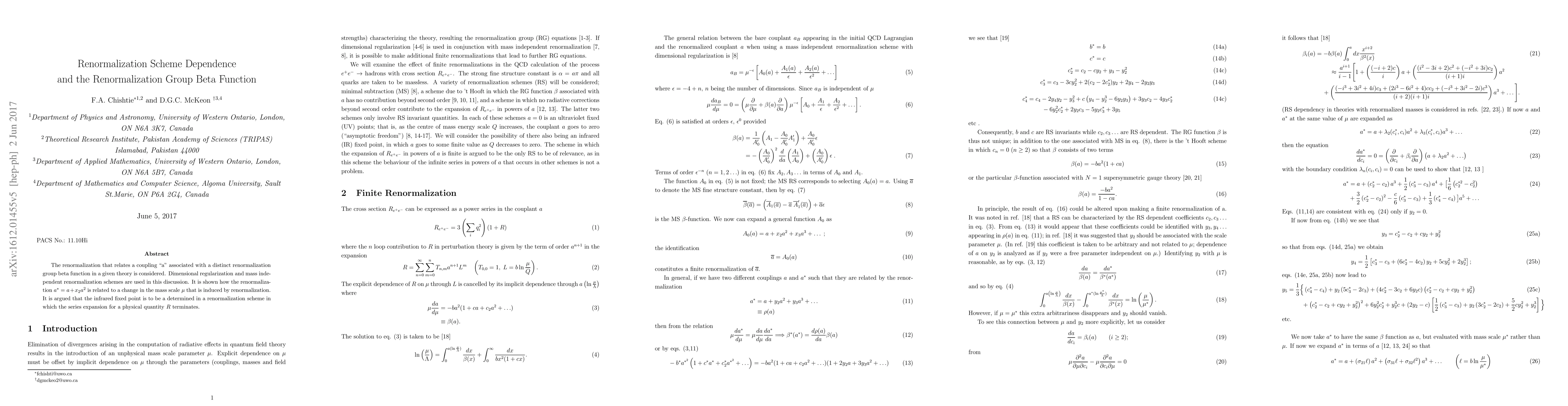 This paper explores the dependence of renormalization schemes on the renormalization group beta function and demonstrates how the renormalization process relates to changes in the mass scale $\mu$. It concludes that the infrared fixed point can be determined in a scheme where the series expansion for a physical quantity $R$ terminates.