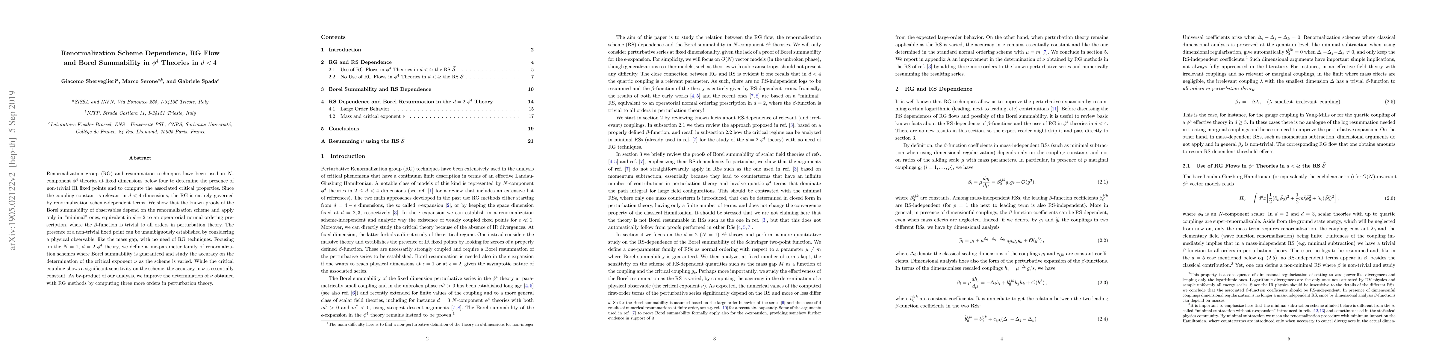 The study utilizes renormalization group (RG) techniques and Borel resummation methods in $\phi^4$ theories below four dimensions to analyze the scheme dependence, RG flow, and Borel summability.