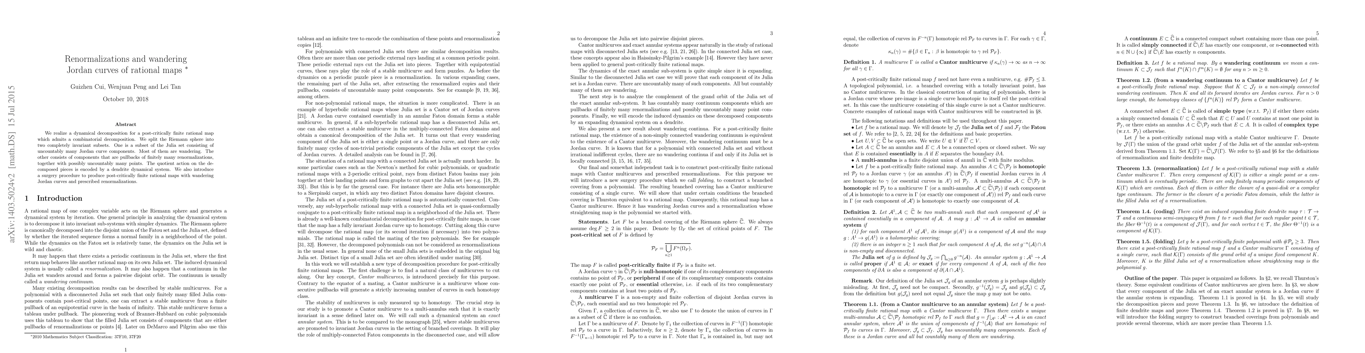 The paper decomposes the dynamical system of a post-critically finite rational map into invariant subsets, identifying wandering Jordan curves in the Julia set and renormalization pullbacks, and introduces a surgical method to create such maps. The decomposed dynamics are represented by a dendrite system.