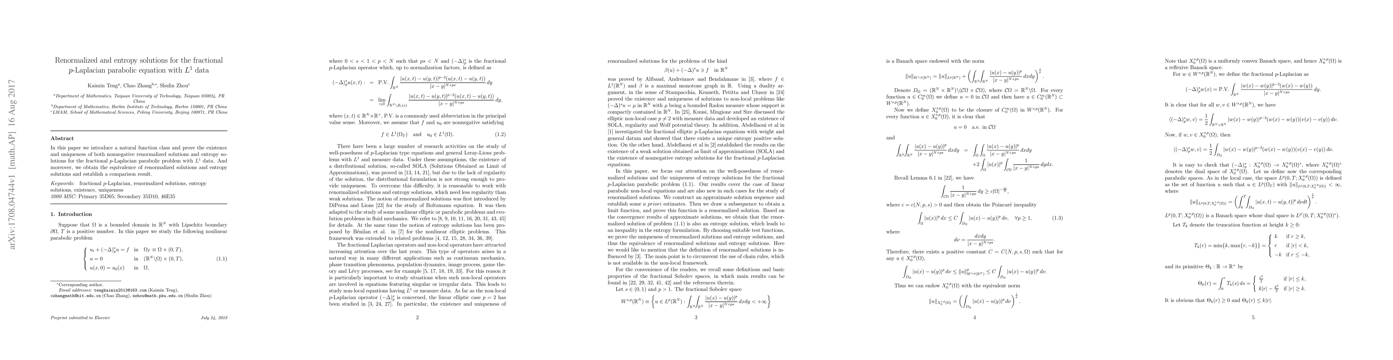 This paper establishes the existence and uniqueness of nonnegative renormalized and entropy solutions for a fractional p-Laplacian parabolic equation with L^1 data, proving their equivalence and presenting a comparison result.