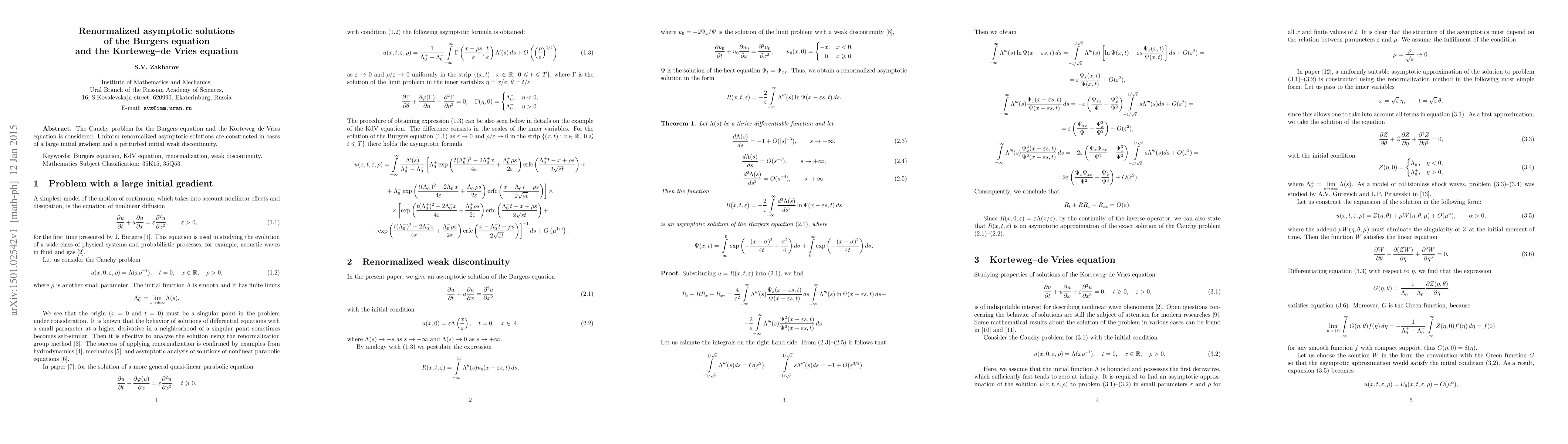 The Cauchy problem for the Burgers equation and the Korteweg-de Vries equation is considered. Uniform renormalized asymptotic solutions are constructed in cases of a large initial gradient and a perturbed initial weak discontinuity.