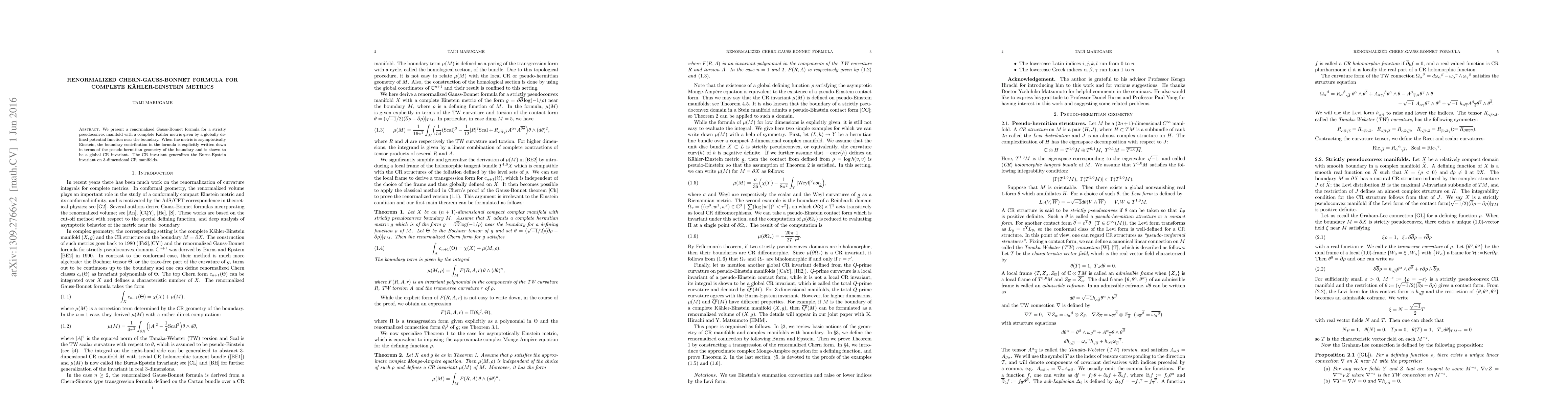 Summary: This paper introduces a renormalized Gauss-Bonnet formula for approximate Kähler-Einstein metrics on compact complex manifolds, providing an explicit boundary integral that generalizes the Burns-Epstein invariant and characterizes pseudo-Einstein properties.