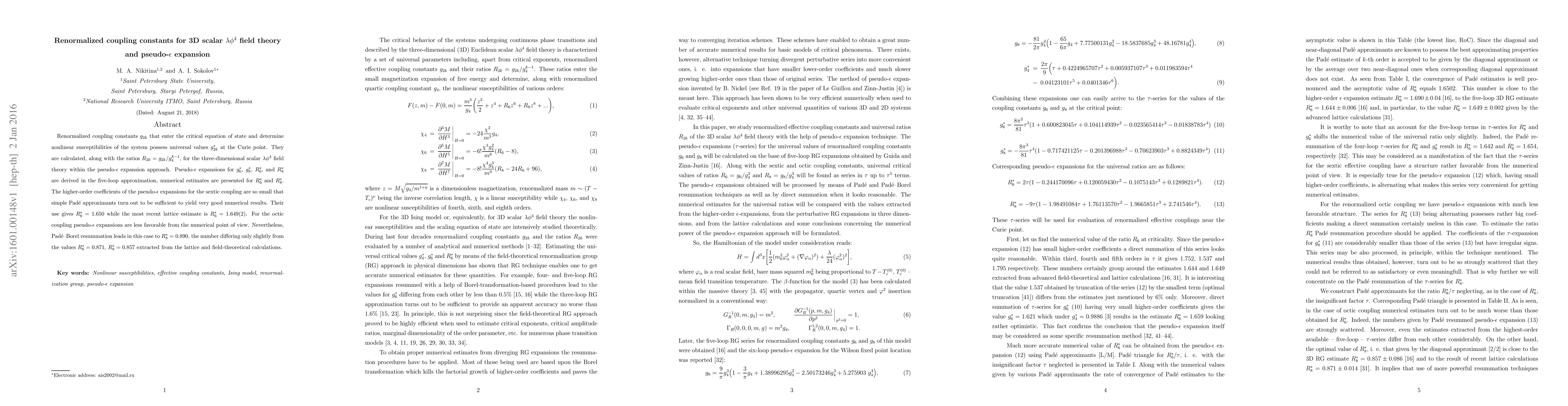 Renormalized coupling constants g_{2k} that enter the critical equation of state and determine nonlinear susceptibilities of the system possess universal values g*_{2k} at the Curie point. They are calculated, along with the ratios R_{2k} = g_{2k}/g_4^{k-1}, for the three-dimensional scalar \lambda\phi^4 field theory within the pseudo-\epsilon-expansion approach. Pseudo-\epsilon-expansions for g*_6, g*_8, R*_6, and R*_8 are derived in the five-loop approximation, numerical estimates are presented for R*_6 and R*_8. The higher-order coefficients of the pseudo-\epsilon-expansions for the sextic coupling are so small that simple Pade approximants turn out to be sufficient to yield very good numerical results. Their use gives R*_6 = 1.650 while the most recent lattice estimate is R*_6 = 1.649(2). For the octic coupling pseudo-\epsilon-expansions are less favorable from the numerical point of view. Nevertheless, Pade-Borel resummation leads in this case to R*_8 = 0.890, the number differing only slightly from the values R*_8 = 0.871, R*_8 = 0.857 extracted from the lattice and field-theoretical calculations.