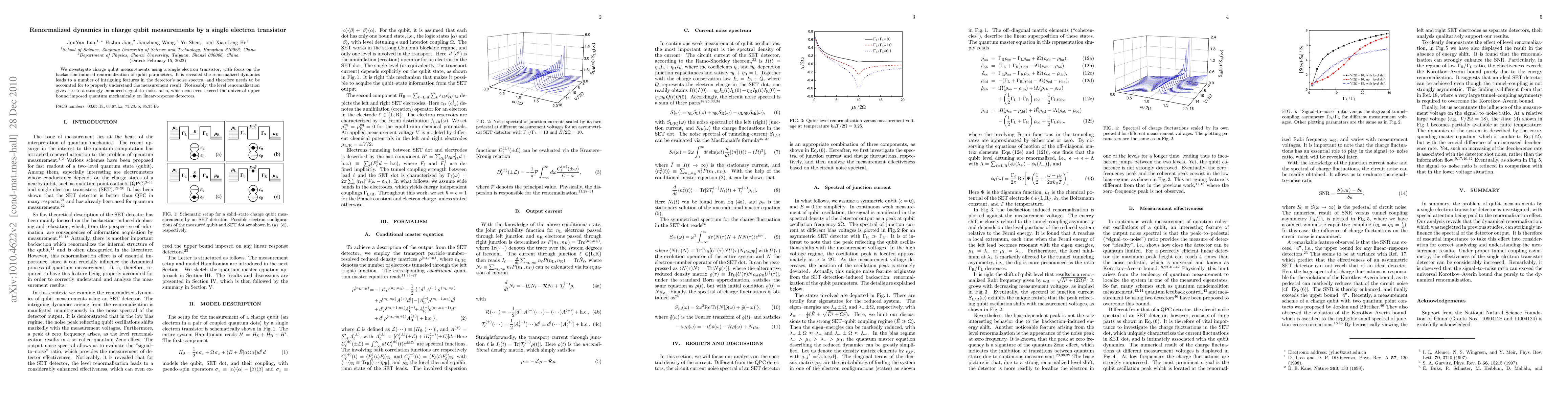 This paper explores charge qubit measurements via a single electron transistor, highlighting the backaction-induced renormalization of qubit parameters. The study finds that renormalized dynamics significantly alters detector noise spectra and enhances the signal-to-noise ratio beyond quantum mechanical limits.