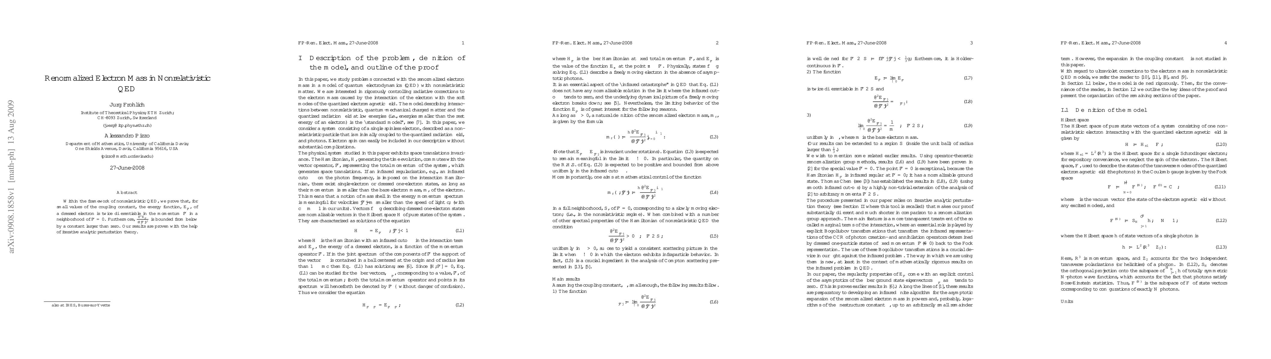 Within the framework of nonrelativistic QED, we prove that, for small values of the coupling constant, the energy function, E_|P|, of a dressed electron is twice differentiable in the momentum P in a neighborhood of P = 0. Furthermore, (E_|P|)" is bounded from below by a constant larger than zero. Our results are proven with the help of iterative analytic perturbation theory.