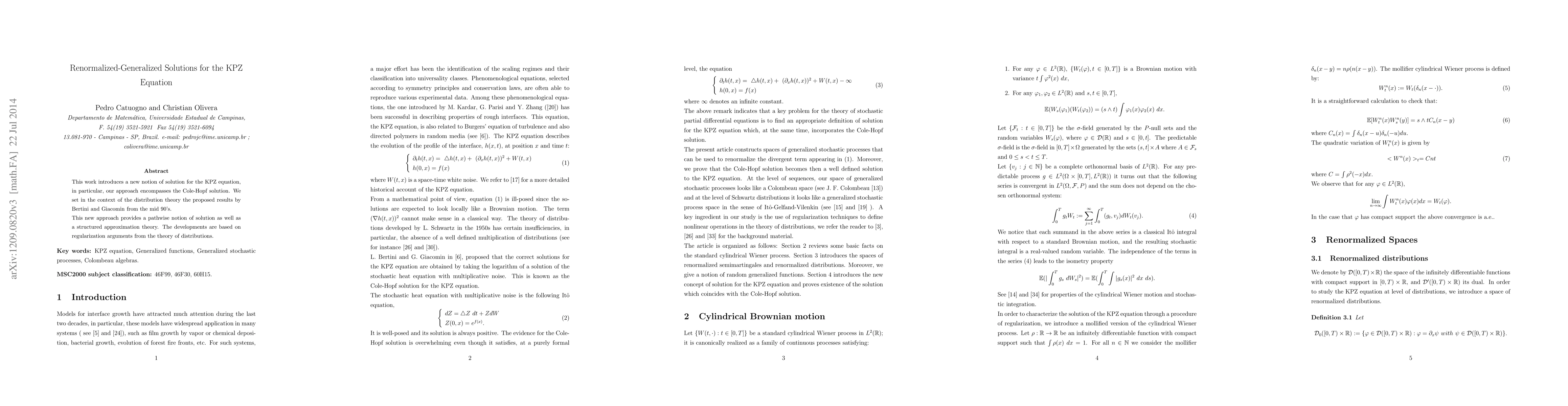This paper proposes a novel renormalized-generalized solution for the KPZ equation, incorporating the Cole-Hopf solution, and builds on distribution theory to develop a pathwise notion and structured approximation theory, leveraging regularization techniques from distribution theory.
