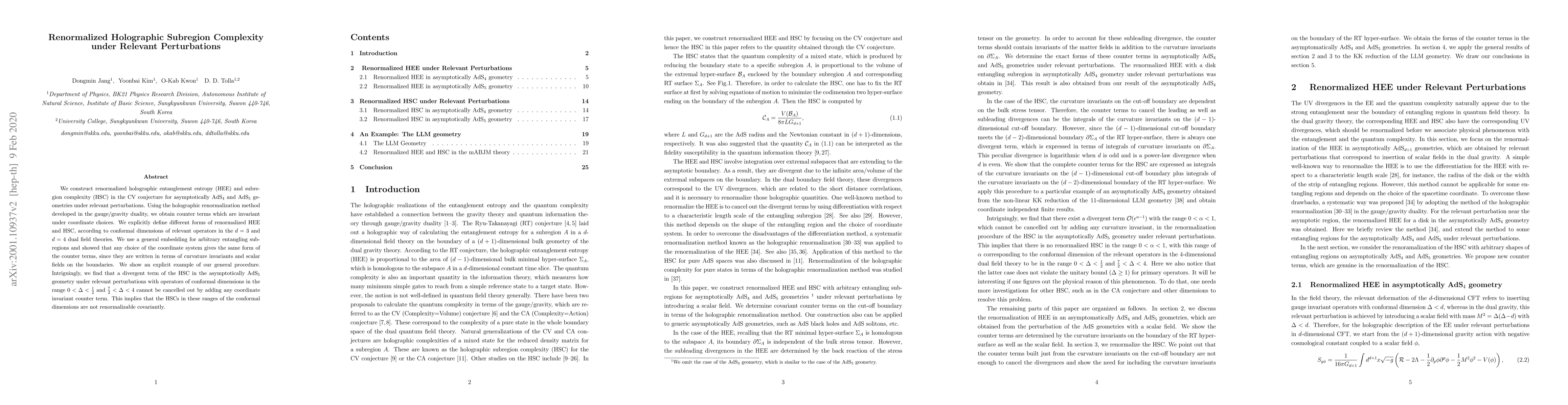 Researchers studied how complex subregions behave in holographic theories under perturbations, finding that certain ranges of conformal dimensions cannot be renormalized covariantly.