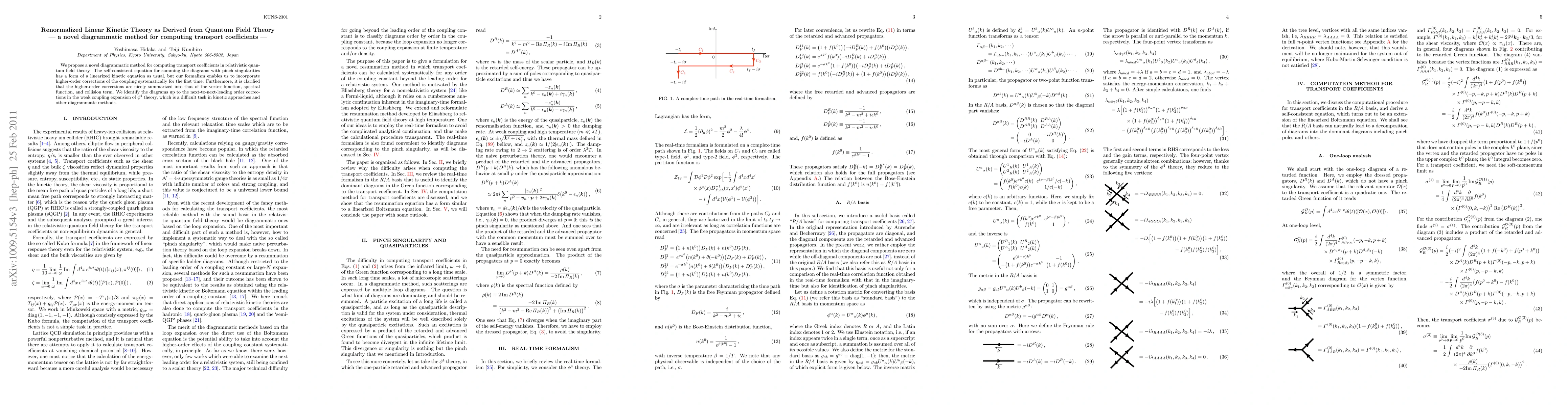We propose a novel diagrammatic method for computing transport coefficients in relativistic quantum field theory. The self-consistent equation for summing the diagrams with pinch singularities has a form of a linearized kinetic equation as usual, but our formalism enables us to incorporate higher-order corrections of the coupling systematically for the first time. Furthermore, it is clarified that the higher-order corrections are nicely summarized into that of the vertex function, spectral function, and collision term. We identify the diagrams up to the next-to-next-leading order corrections in the weak coupling expansion of phi^4 theory, which is a difficult task in kinetic approaches and other diagrammatic methods.