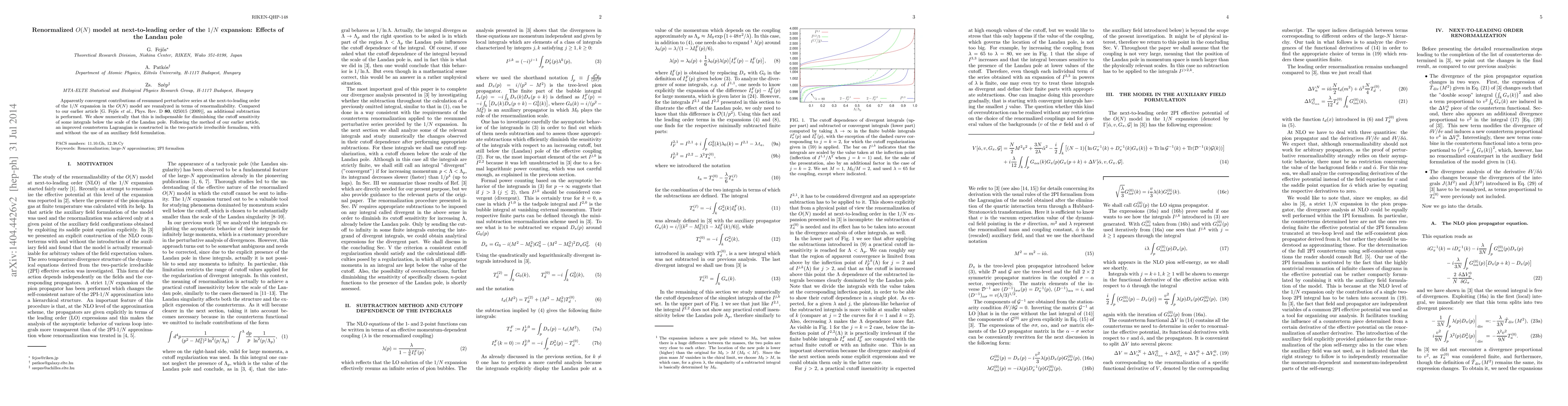 This paper reanalyzes the renormalized O(N) model at next-to-leading order of the 1/N expansion, introducing an additional subtraction to diminish cutoff sensitivity below the Landau pole. The authors construct an improved counterterm Lagrangian in the two-particle irreducible formalism, demonstrating the necessity of this subtraction for maintaining renormalizability.