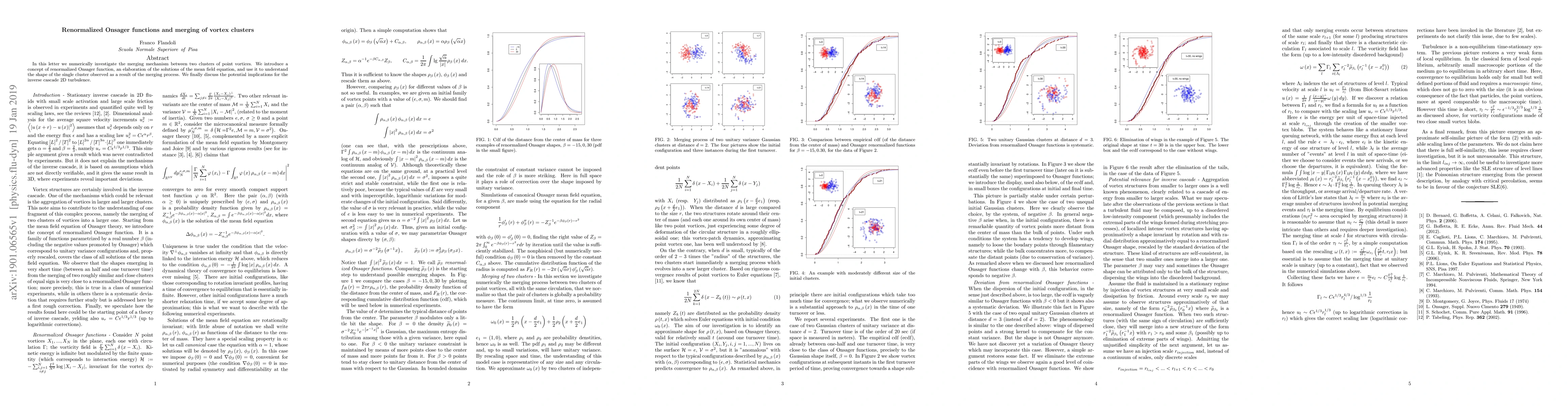 This paper numerically explores the merging of two clusters of point vortices, introducing a renormalized Onsager function to analyze the resulting single cluster's shape. The findings have implications for understanding the inverse cascade in 2D turbulence.