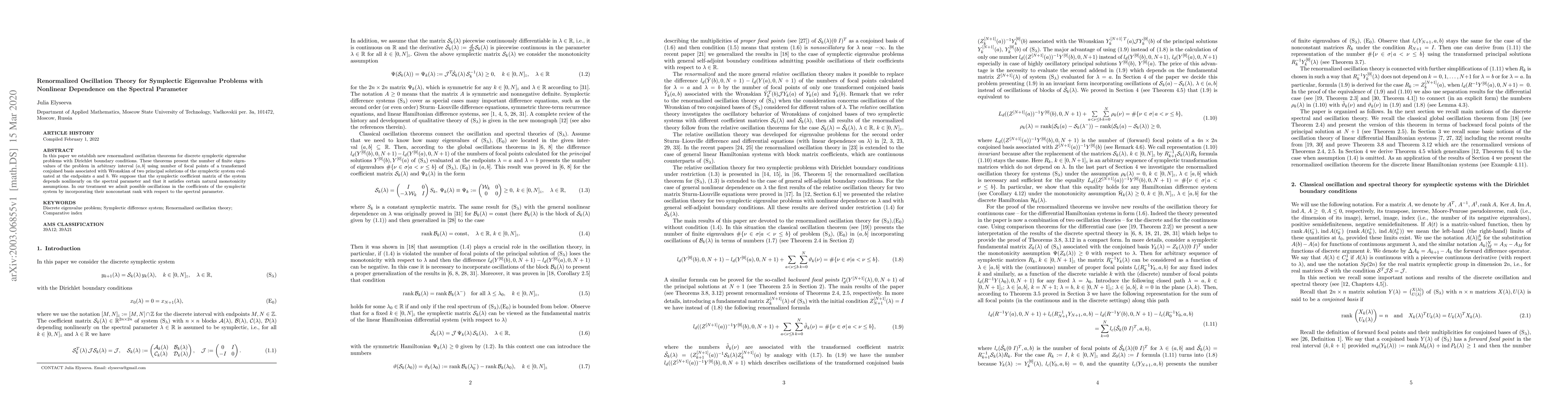 This paper establishes renormalized oscillation theorems for discrete symplectic eigenvalue problems with nonlinear dependence on the spectral parameter, showing the number of finite eigenvalues in an interval using the focal points of a transformed conjoined basis linked to the Wronskian of two principal solutions. It considers monotonicity and nonconstant rank of the symplectic coefficient matrix.