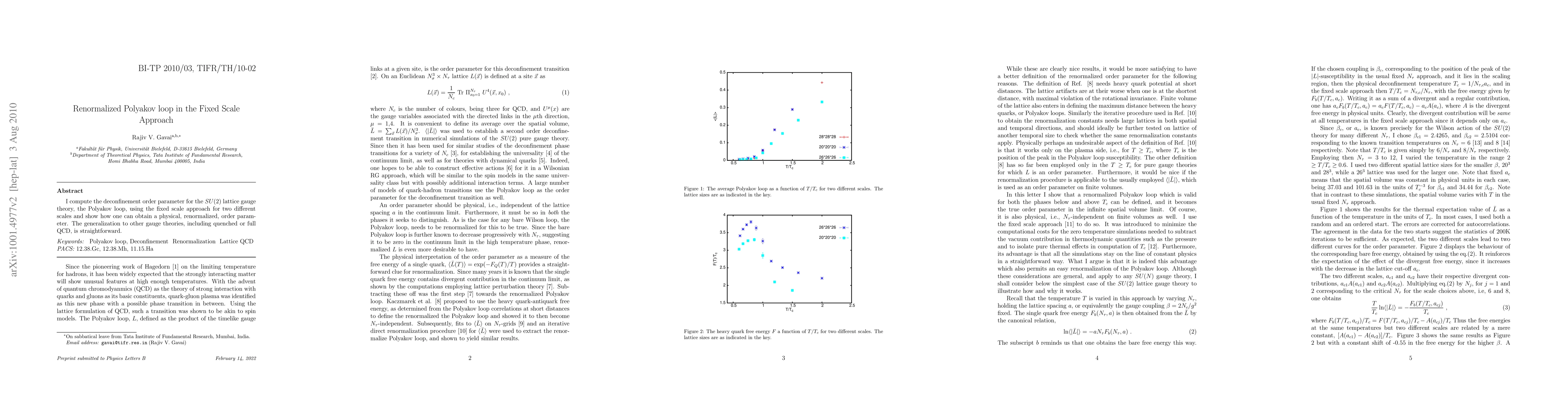 I compute the deconfinement order parameter for the SU(2) lattice gauge theory, the Polyakov loop, using the fixed scale approach for two different scales and show how one can obtain a physical, renormalized, order parameter. The generalization to other gauge theories, including quenched or full QCD, is straightforward.