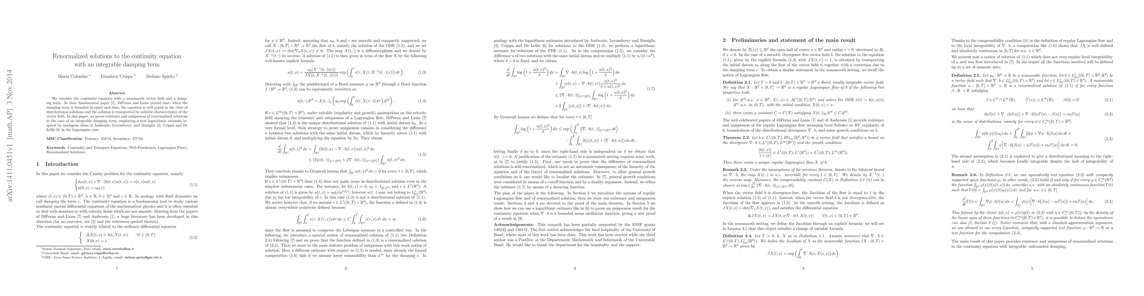 This paper proves existence and uniqueness of solutions to the continuity equation with an integrable damping term, using a new logarithmic estimate to handle nonsmooth vector fields.