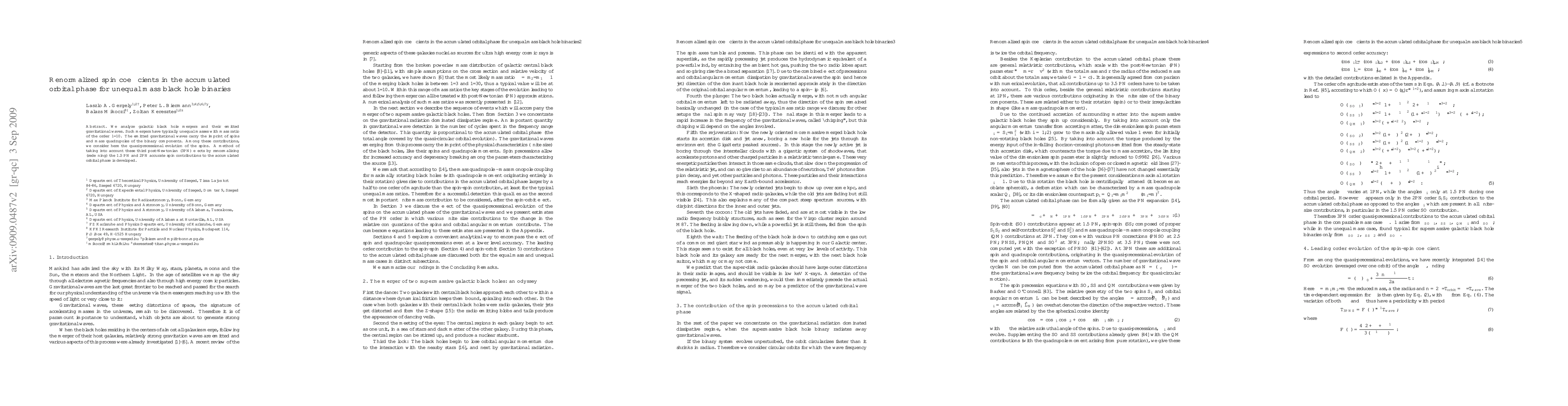 We analyze galactic black hole mergers and their emitted gravitational waves. Such mergers have typically unequal masses with mass ratio of the order 1/10. The emitted gravitational waves carry the inprint of spins and mass quadrupoles of the binary components. Among these contributions, we consider here the quasi-precessional evolution of the spins. A method of taking into account these third post-Newtonian (3PN) effects by renormalizing (redefining) the 1.5 PN and 2PN accurate spin contributions to the accumulated orbital phase is developed.