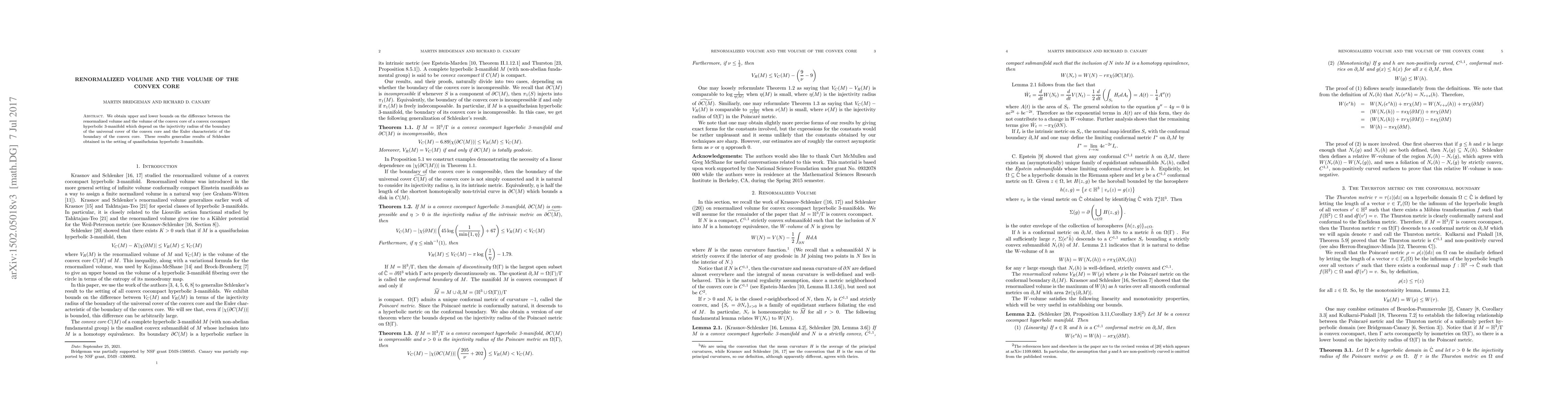 We obtain upper and lower bounds on the difference between the renormalized volume and the volume of the convex core of a convex cocompact hyperbolic 3-manifold which depend on the injectivity radius of the boundary of the universal cover of the convex core and the Euler characteristic of the boundary of the convex core. These results generalize results of Schlenker obtained in the setting of quasifuchsian hyperbolic 3-manifolds.