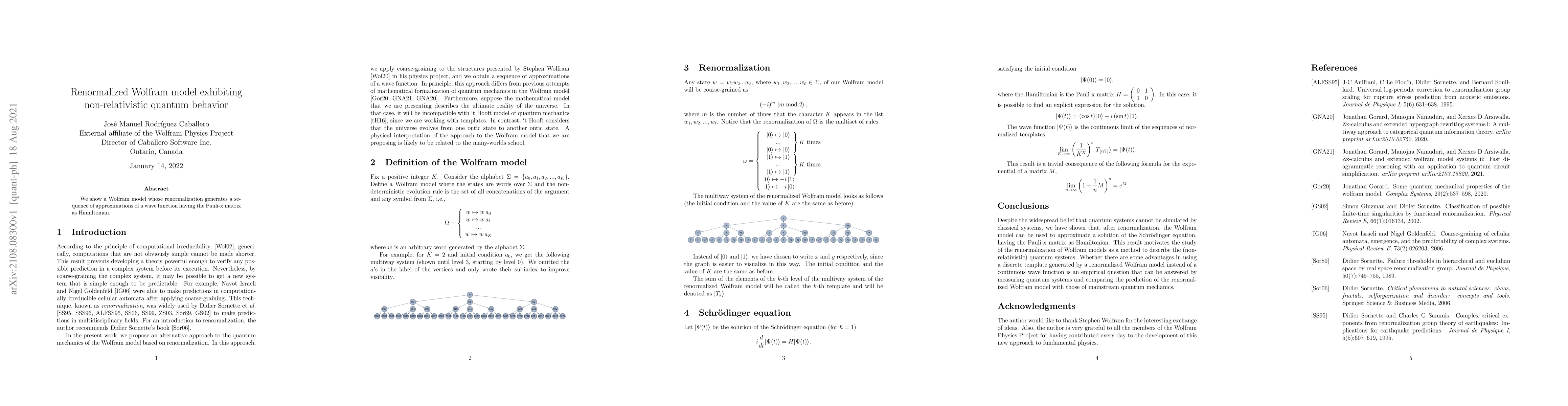 We show a Wolfram model whose renormalization generates a sequence of approximations of a wave function having the Pauli-x matrix as Hamiltonian.