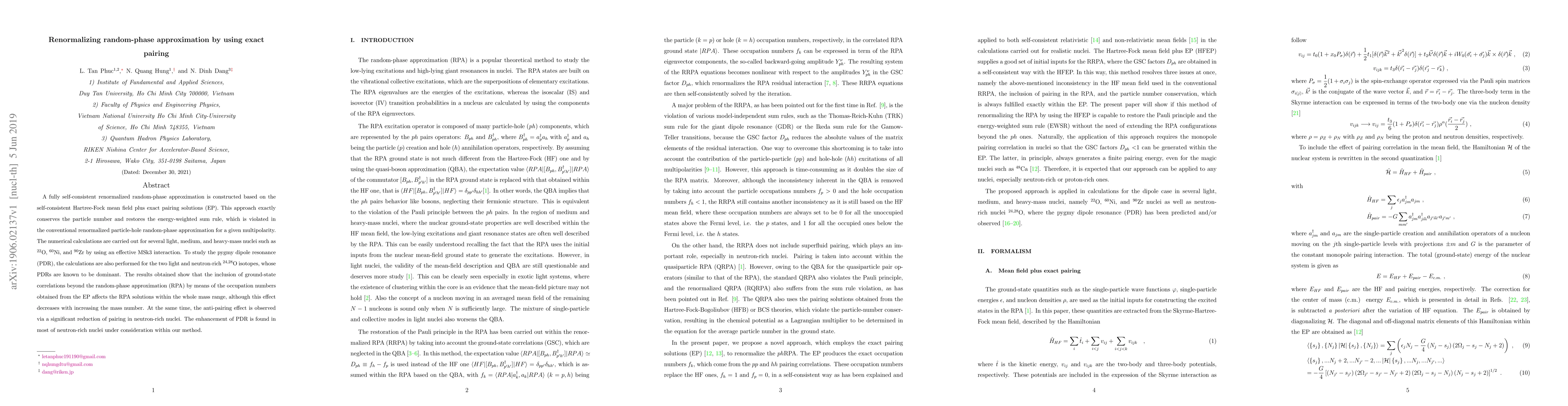 This paper constructs a self-consistent renormalized random-phase approximation incorporating exact pairing to conserve particle number and restore the energy-weighted sum rule. The method shows significant effects on RPA solutions across various nuclear masses, enhancing pygmy dipole resonance in neutron-rich nuclei.