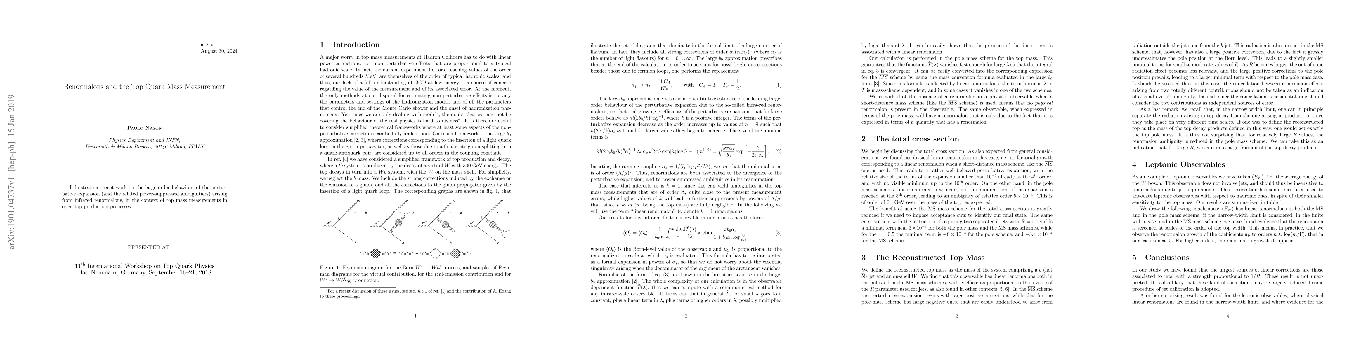 I illustrate a recent work on the large-order behaviour of the perturbative expansion (and the related power-suppressed ambiguities) arising from infrared renormalons, in the context of top mass measurements in open-top production processes.