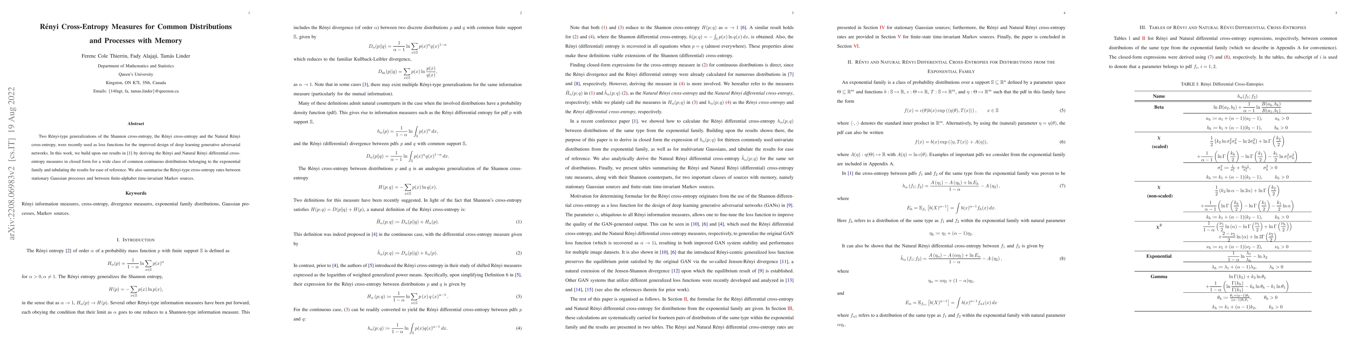 Two R\'{e}nyi-type generalizations of the Shannon cross-entropy, the R\'{e}nyi cross-entropy and the Natural R\'{e}nyi cross-entropy, were recently used as loss functions for the improved design of deep learning generative adversarial networks. In this work, we build upon our results in [1] by deriving the R\'{e}nyi and Natural R\'{e}nyi differential cross-entropy measures in closed form for a wide class of common continuous distributions belonging to the exponential family and tabulating the results for ease of reference. We also summarise the R\'{e}nyi-type cross-entropy rates between stationary Gaussian processes and between finite-alphabet time-invariant Markov sources.