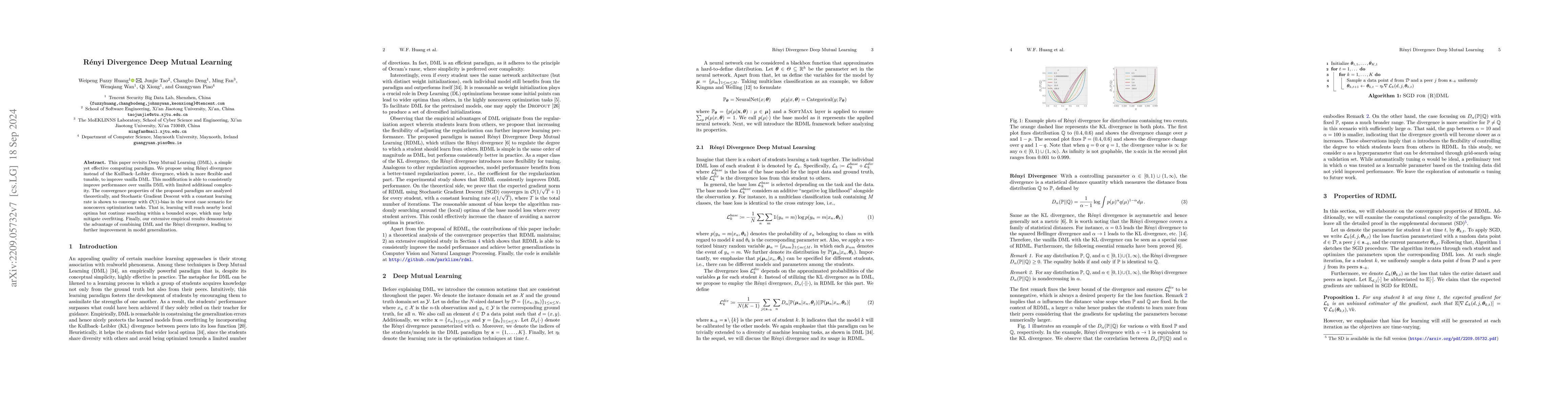 This paper proposes enhancing Deep Mutual Learning (DML) with Rényi divergence instead of KL divergence, showing improved performance and flexibility. Theoretical analysis confirms convergence with bounded bias, potentially mitigating overfitting, and empirical results support enhanced model generalization.