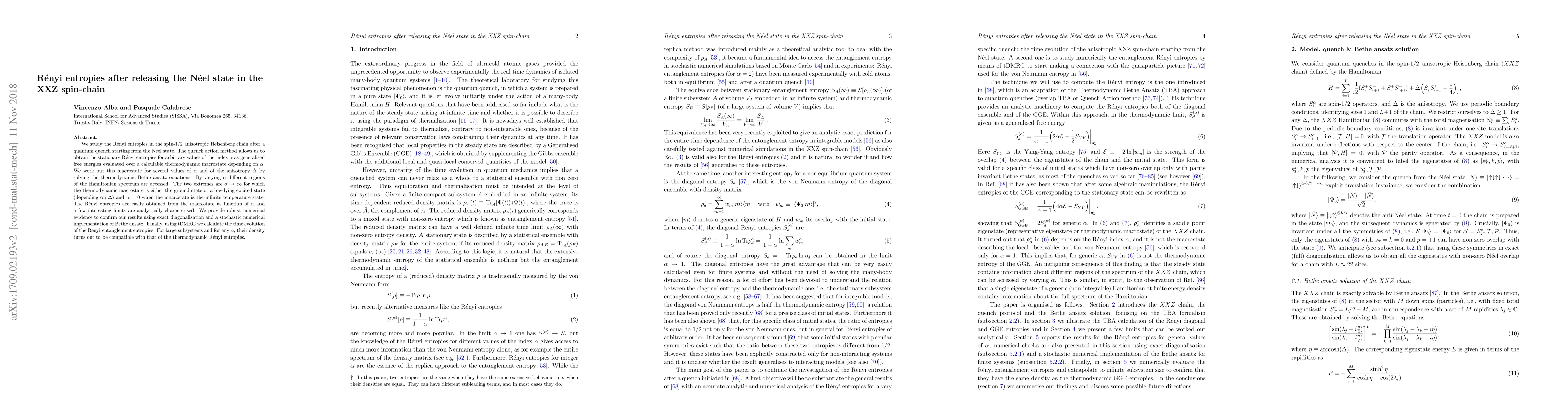 The main technical contribution is the development of a method to obtain stationary Rényi entropies after releasing the Néel state in the XXZ spin-chain.