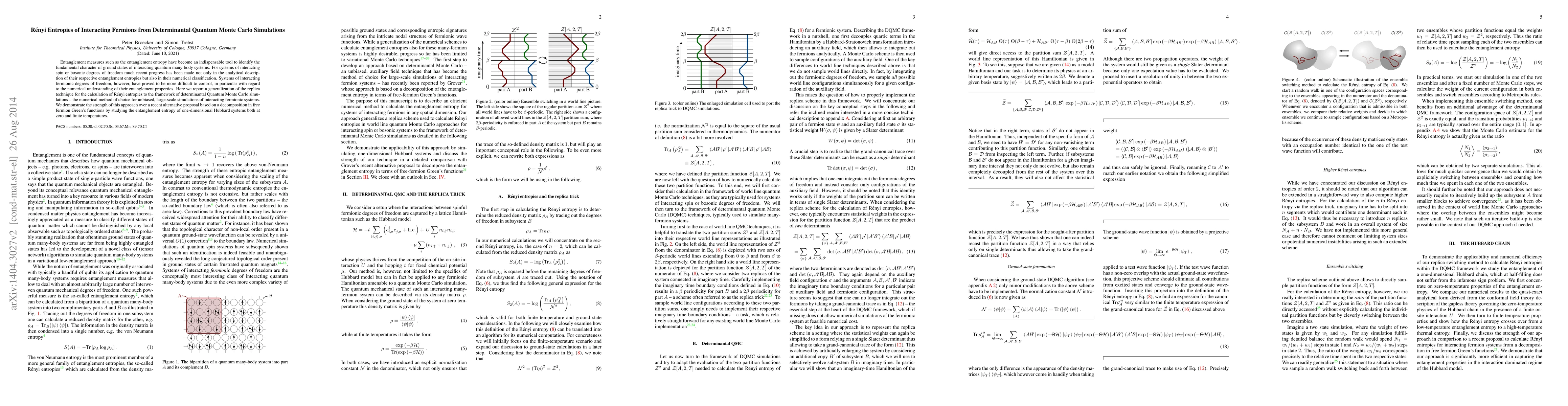 Entanglement measures such as the entanglement entropy have become an indispensable tool to identify the fundamental character of ground states of interacting quantum many-body systems. For systems of interacting spin or bosonic degrees of freedom much recent progress has been made not only in the analytical description of their respective entanglement entropies but also in their numerical classification. Systems of interacting fermionic degrees of freedom however have proved to be more difficult to control, in particular with regard to the numerical understanding of their entanglement properties. Here we report a generalization of the replica technique for the calculation of Renyi entropies to the framework of determinantal Quantum Monte Carlo simulations -- the numerical method of choice for unbiased, large-scale simulations of interacting fermionic systems. We demonstrate the strength of this approach over a recent alternative proposal based on a decomposition in free fermion Green's functions by studying the entanglement entropy of one-dimensional Hubbard systems both at zero and finite temperatures.